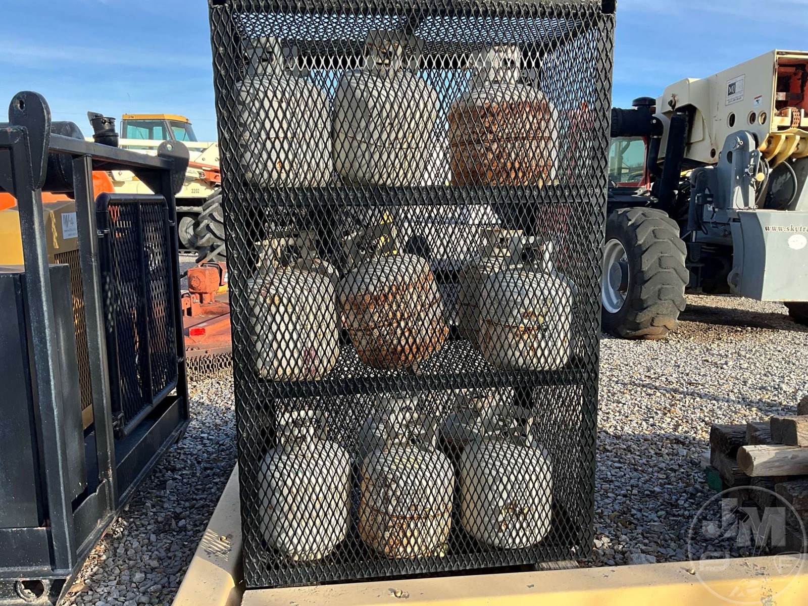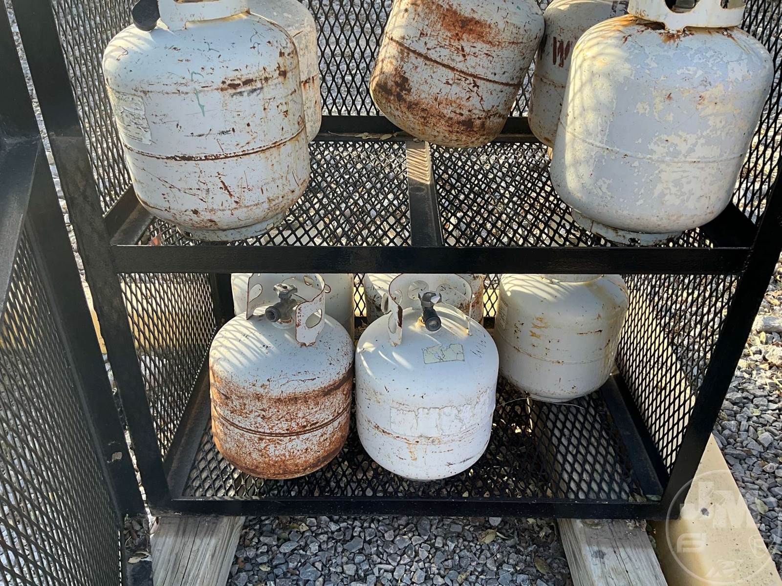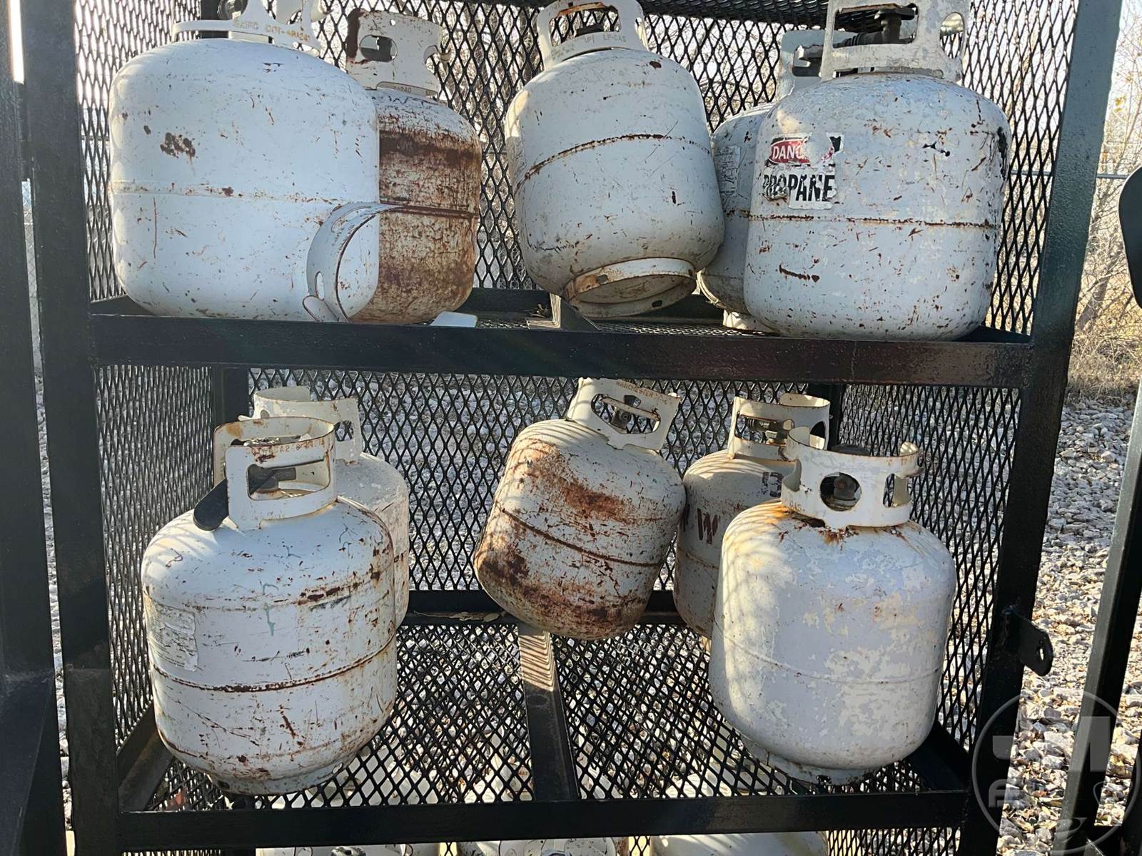 METAL STORAGE CABINET WITH PROPANE BOTTLES