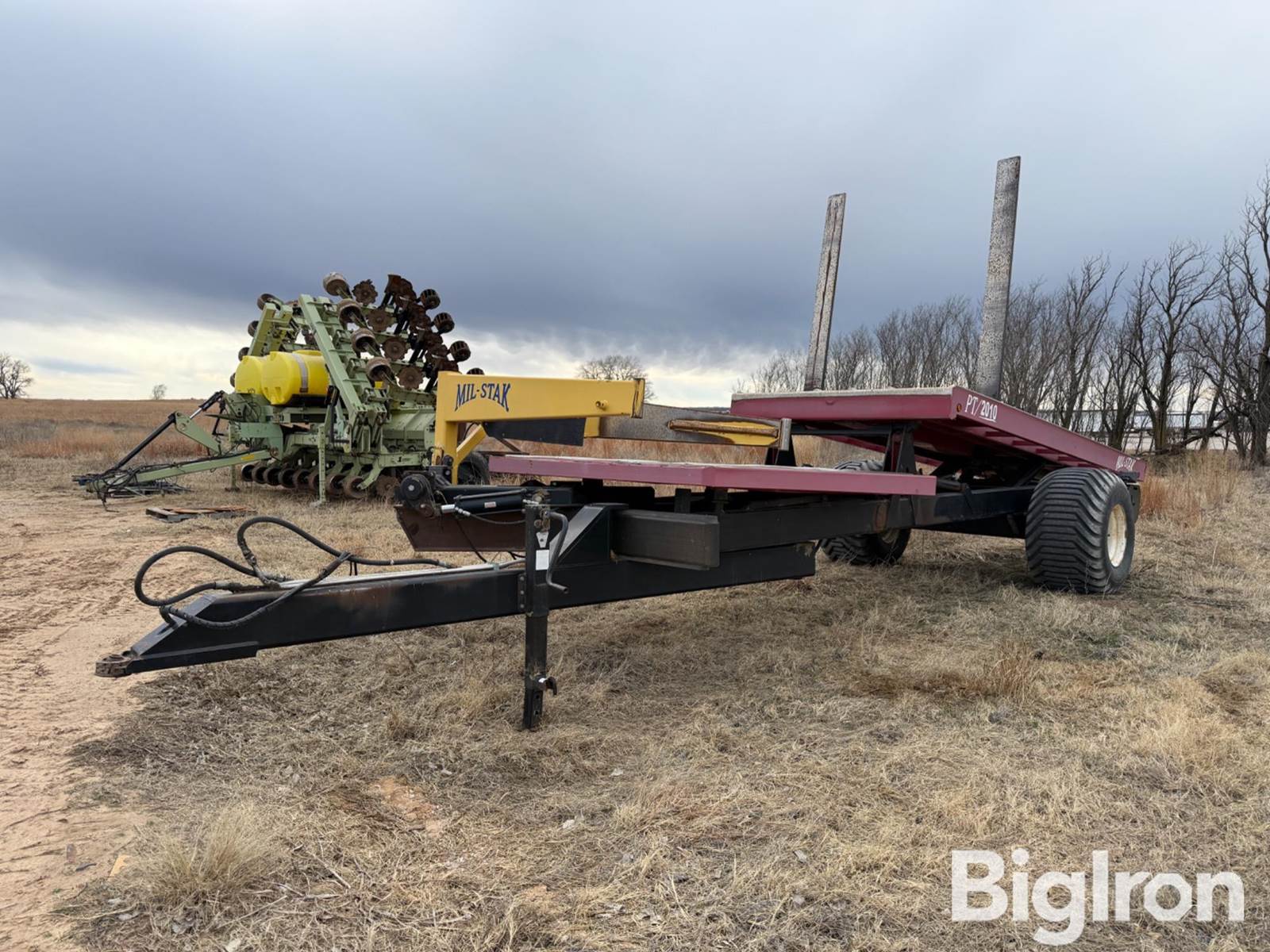 Mil-Stak PT 2010 Pull-Type Hay Stacking Wagon, Pin Hitch, Hydraulic Bale Arm, Hydraulic Tilt, Hydraulic Swinging, Hydraulic Bale Stacking Arms, Super Singles, Tire Size: 700/50 22.5, Stacks 18- 3x3's, 12 - 3x4's, 8 - 4x4's bales, In Cab Controller included, Jack Stand, SN: PT/10001