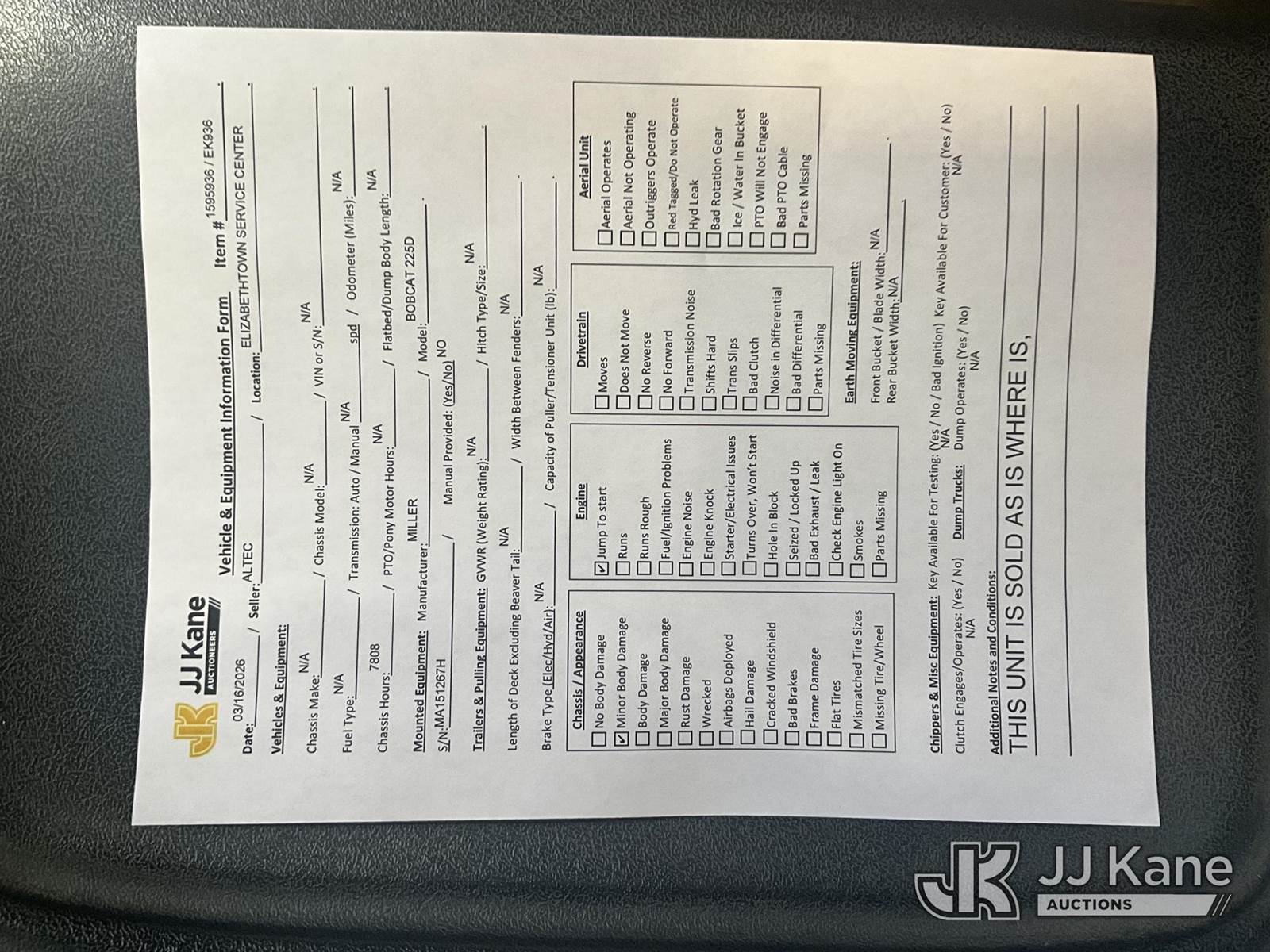 Miller Bobcat 225D Welder, s/n MA151267H, NOTE: This unit is being sold AS IS/WHERE IS via Timed Auction and is located in Elizabethtown, KY. Inspection & preview days for this unit are by appointment only; please contact us at contact@jjkane.com or 84-Go-JJKane for more details. Kentucky Auctioneer Michael Whitebread - License # 256617 (Buyer is responsible for removal. Assistance by consignor or JJ Kane Auctions is not assured.)
