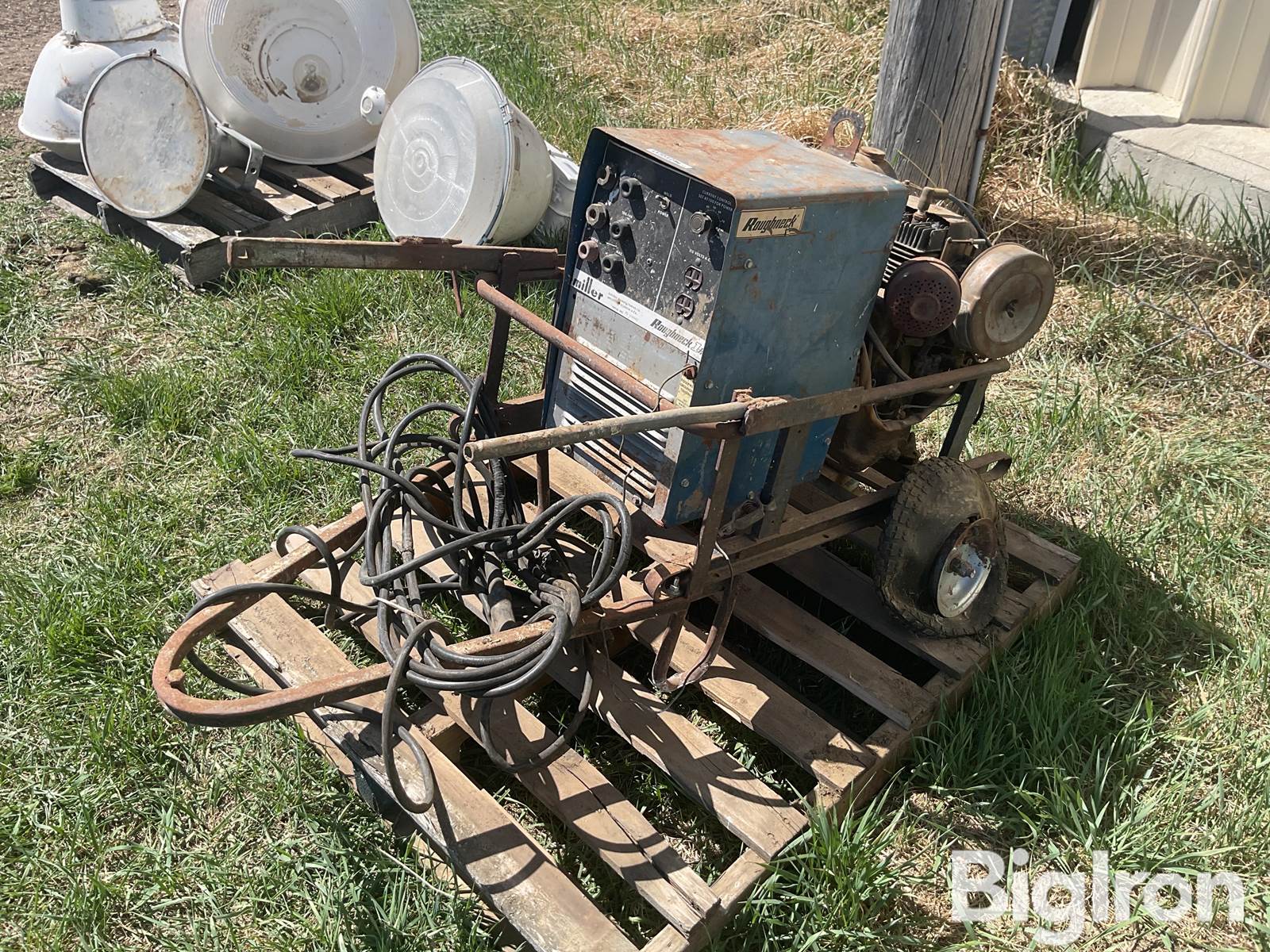 Miller Rough Neck 1E AC Welder, Electric Start, 12 Hp Kohler Gas Engine, 60-140 Amps, Welding Cables Cart, Note: Tires On Cart Don’t Hold Air, Not Operational Day Of Listing, Engine Is Loose, See Video, SN: 72-630987