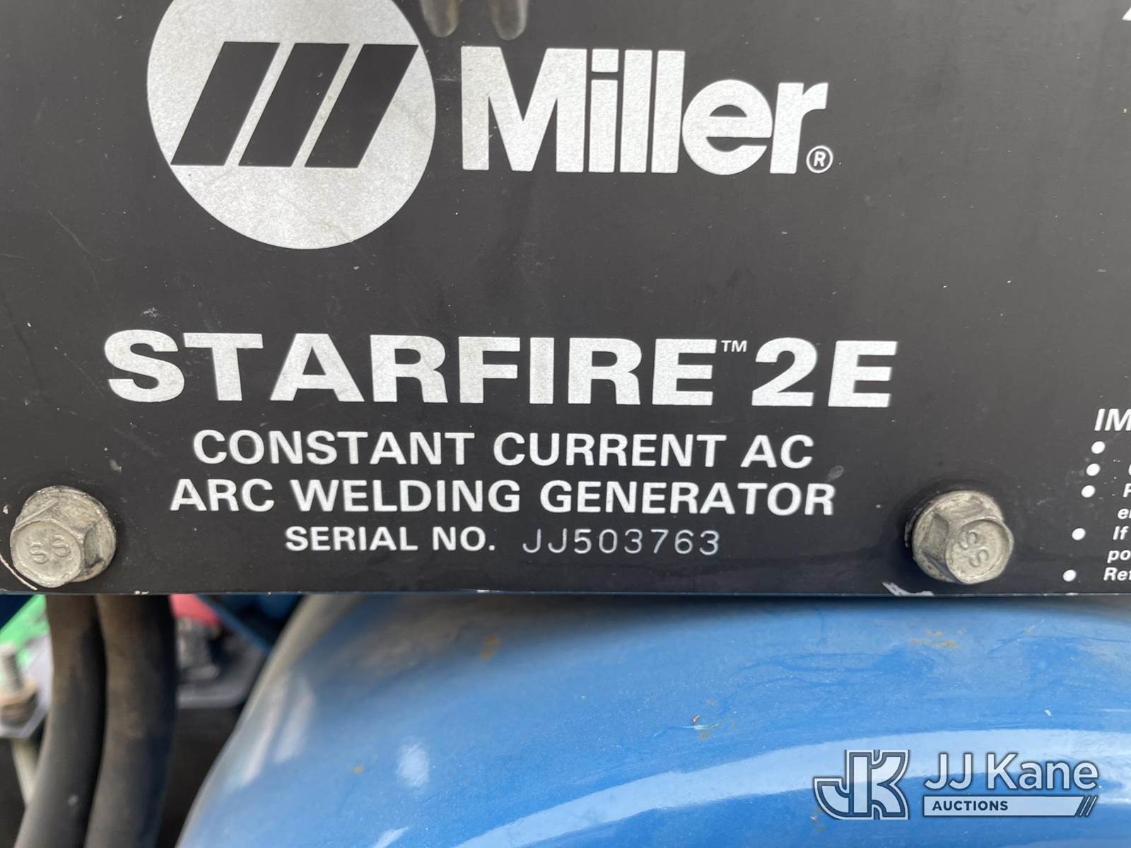 Miller Starfire 2E Welder/Generator, s/n JJ503763, Tecumseh XL gas, Co-op Owned (Runs) (Welder Functionality not tested) NOTE: This unit is being sold AS IS/WHERE IS via Timed Auction and is located in Mahnomen, MN. For specific technical information or questions about this item, contact Ben Boucher at (612) 616-2798. (Buyer is responsible for removal. Assistance by consignor or JJ Kane Auctioneers is not assured.)
