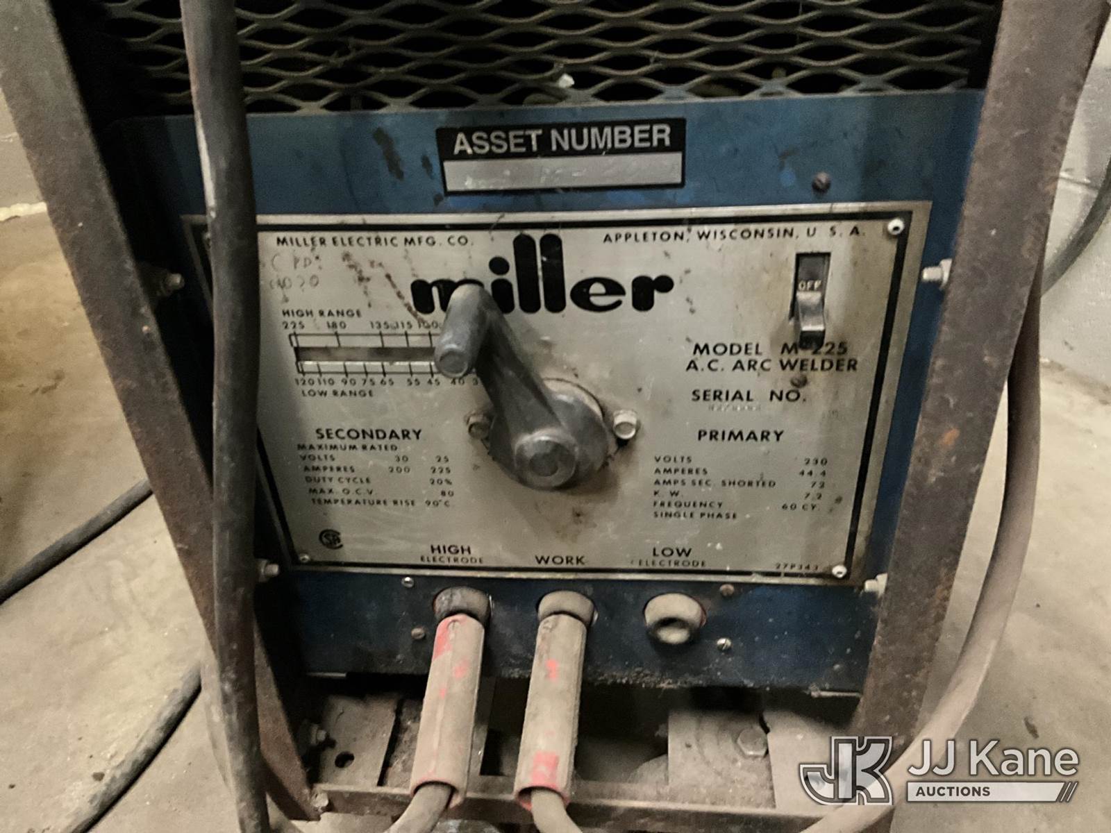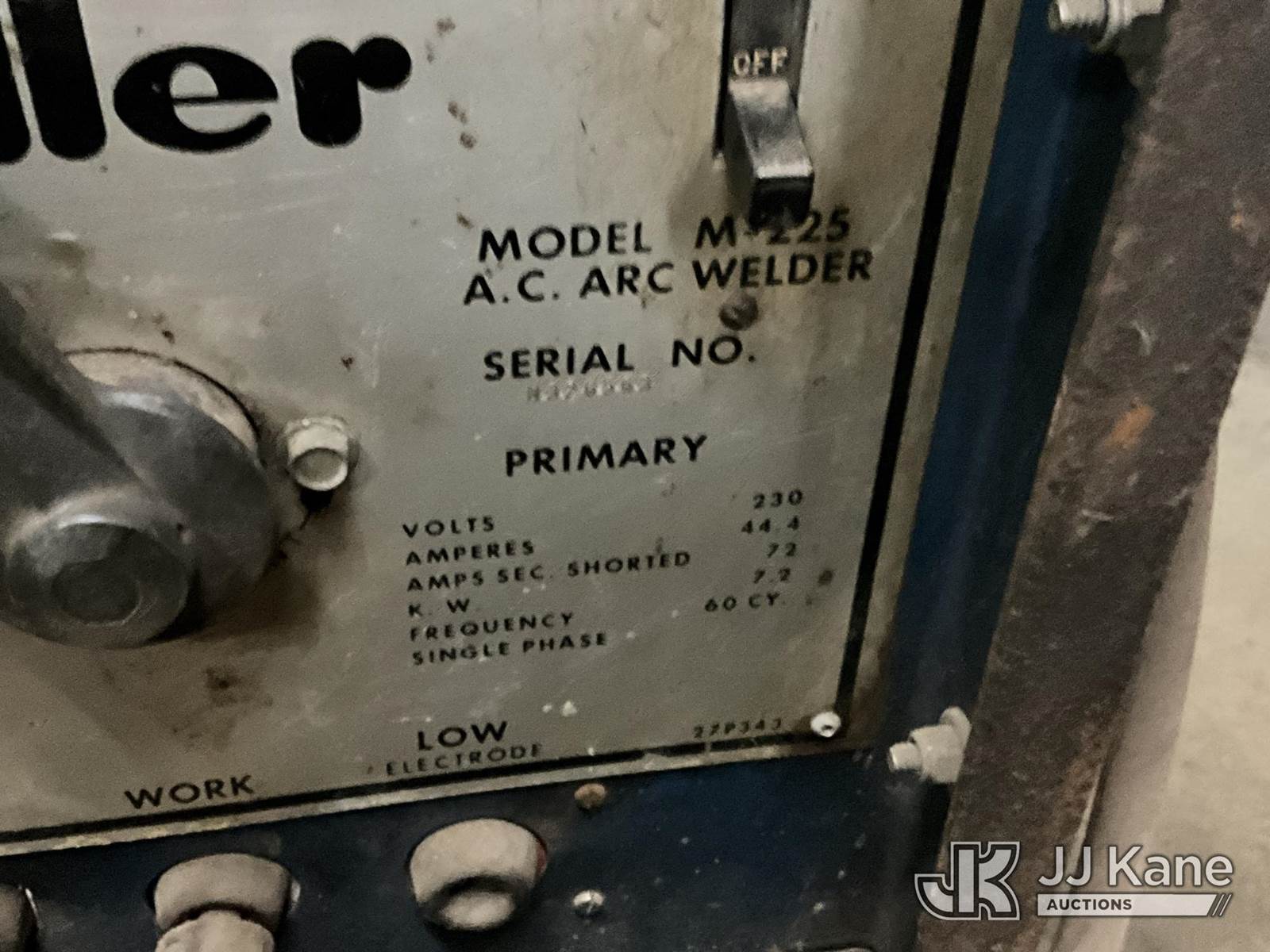 Miller Welder (Not Running, Condition Unknown) NOTE: This unit is being sold AS IS/WHERE IS via Timed Auction and is located in Louisville, KY. For more information & removal arrangements please contact Spencer Owen @ 502-232-2541. Kentucky Auctioneer Michael Whitebread - License # 256617. (Buyer is responsible for removal. Assistance by consignor or JJ Kane Auctions is not assured.)