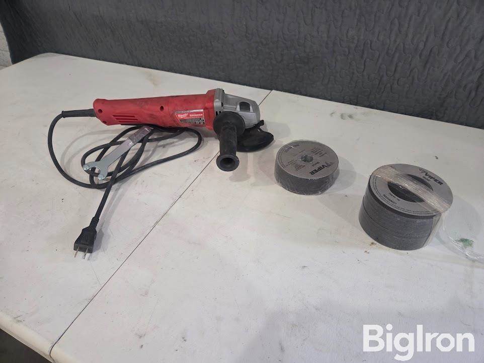 Milwaukee 4-1/2" Grinder, 120 volt, 12,000 rpm, 5/8" Thread Spindle, 36 Additional Cutting/Grinding Wheels, SN: H38D190200147