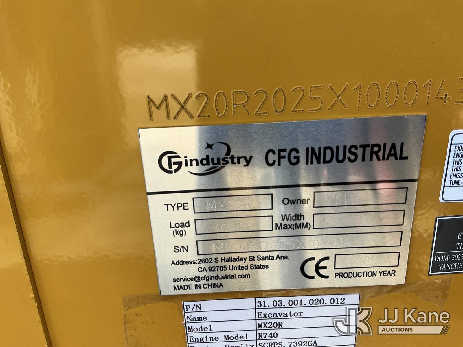Mini Hydraulic Excavator, s/n MX20R2025X100143, Hydrostatic, Gas, CFG Mini Excavator MX20R (New) (Runs, Moves & Operates) NOTE: This unit is being sold AS IS/WHERE IS via Timed Auction and is located in Thonotosassa, FL. Inspection & preview days for this unit are the 2 business days prior to the first day of items closing for this auction, item is located at 11720 N US 301 Thonotosassa, Fl 33592 and hours of operations are 8a-4p. For pre-sale questions, please contact Office Staff @ (813) 986-2485. (Buyer is responsible for removal. Assistance by consignor or JJ Kane Auctioneers is not assured.)