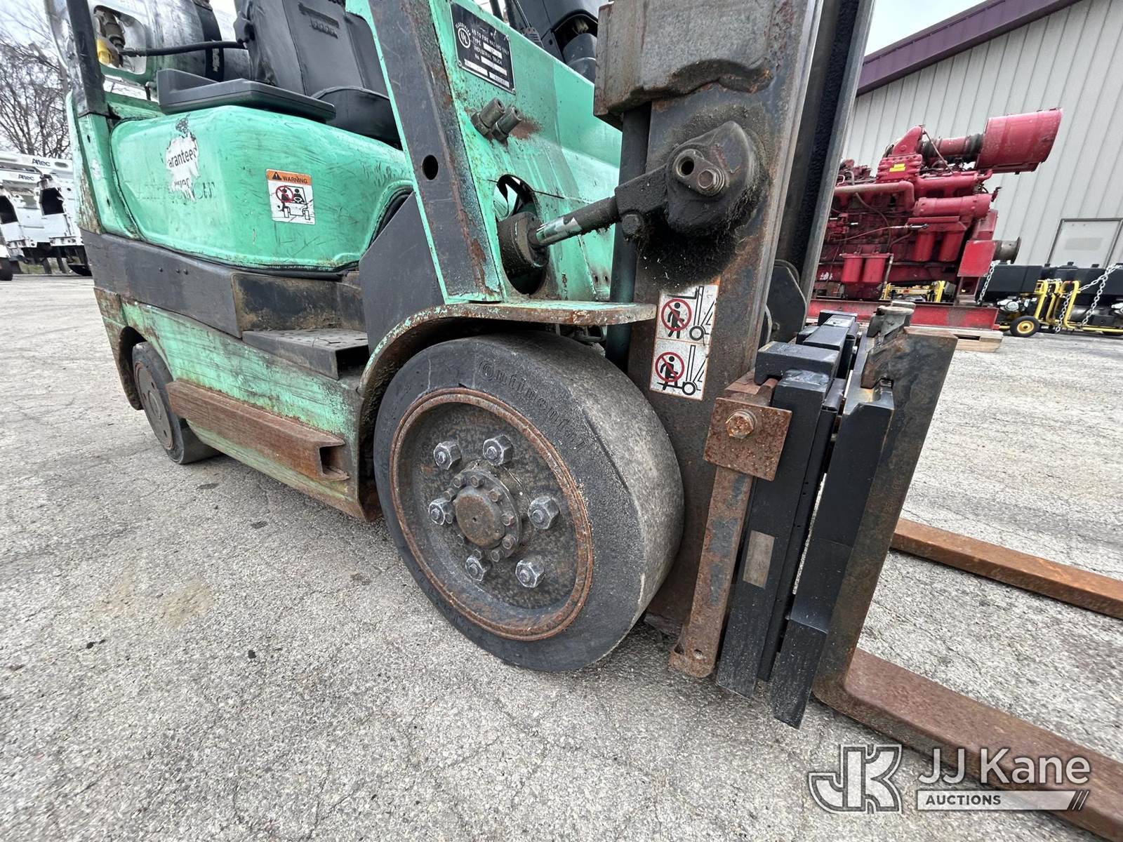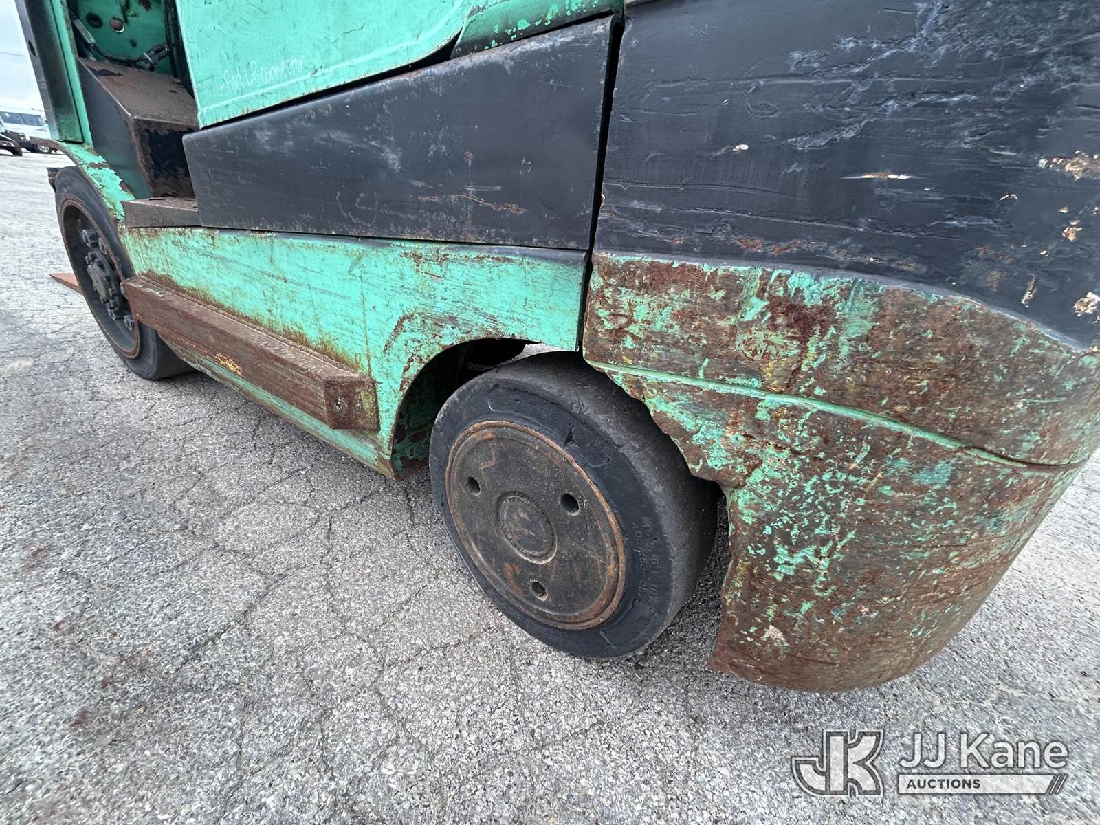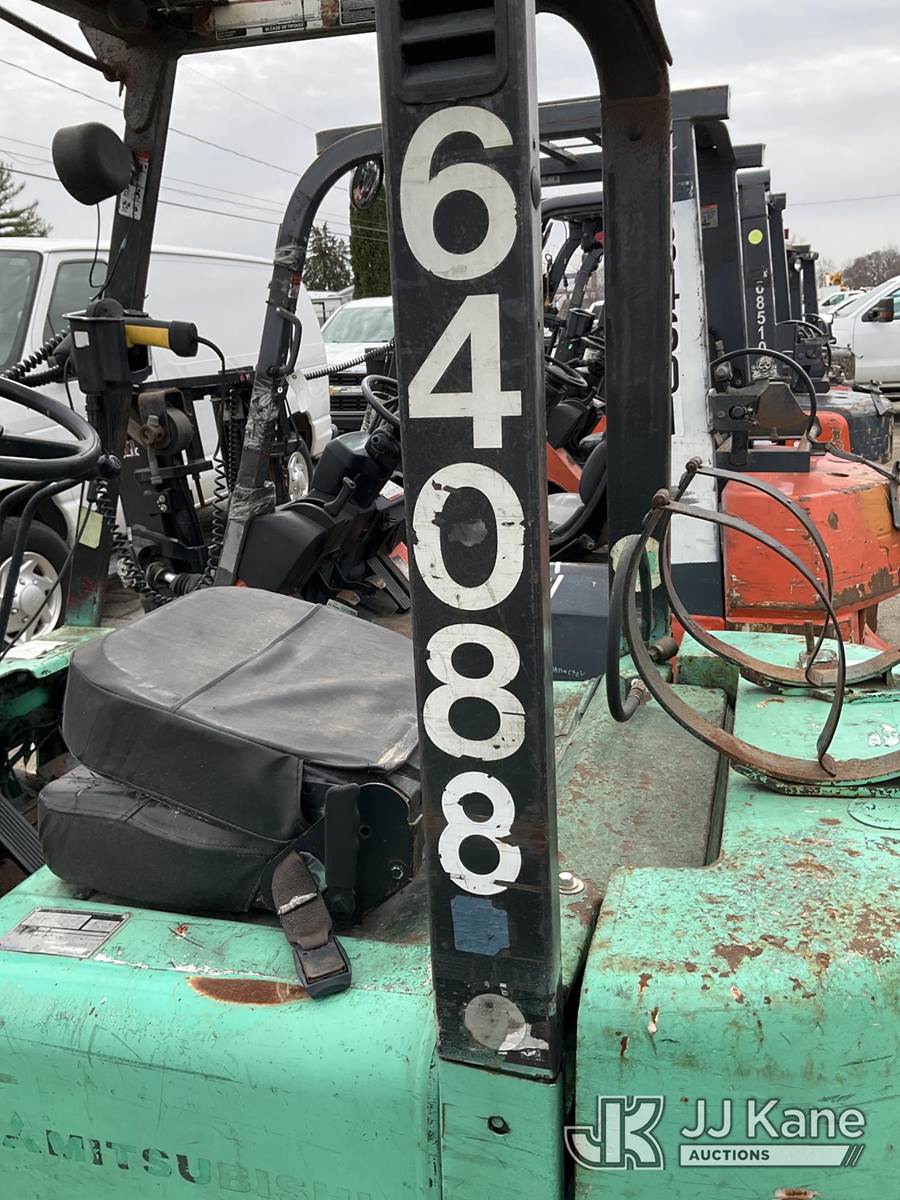 Mitsubishi FGC25K Solid Tired Forklift, s/n AF82D02926, Mitsubishi LPG, Shuttle, with 5,000 lb. lift capacity, 80 in mast height & ROPS, (Runs, Moves & Operates) (LPG Tank Not Included) (Reads 19,093 hours) NOTE: This unit is being sold AS IS/WHERE IS via Timed Auction and is located in South Beloit, IL. Inspection & preview days for this unit are the 2 business days prior to the first day of items closing for this auction, item is located at 14354 Dearborn Ave South Beloit, IL and hours of operations are 8a-4p. For pre-sale questions, please contact Derek Eklund at (608) 904-0618 or (derek.eklund@jjkane.com). (Buyer is responsible for removal. Assistance by consignor or JJ Kane Auctions is not assured.)
