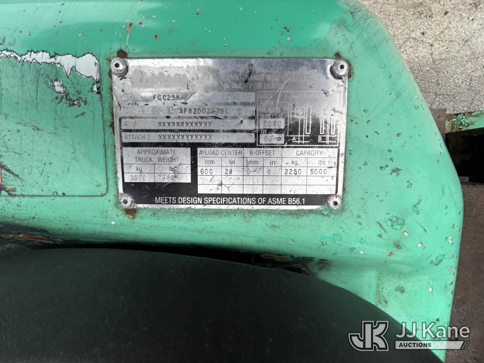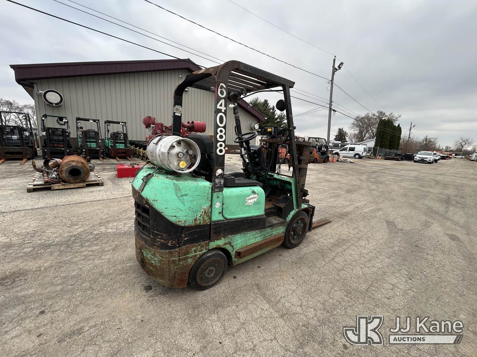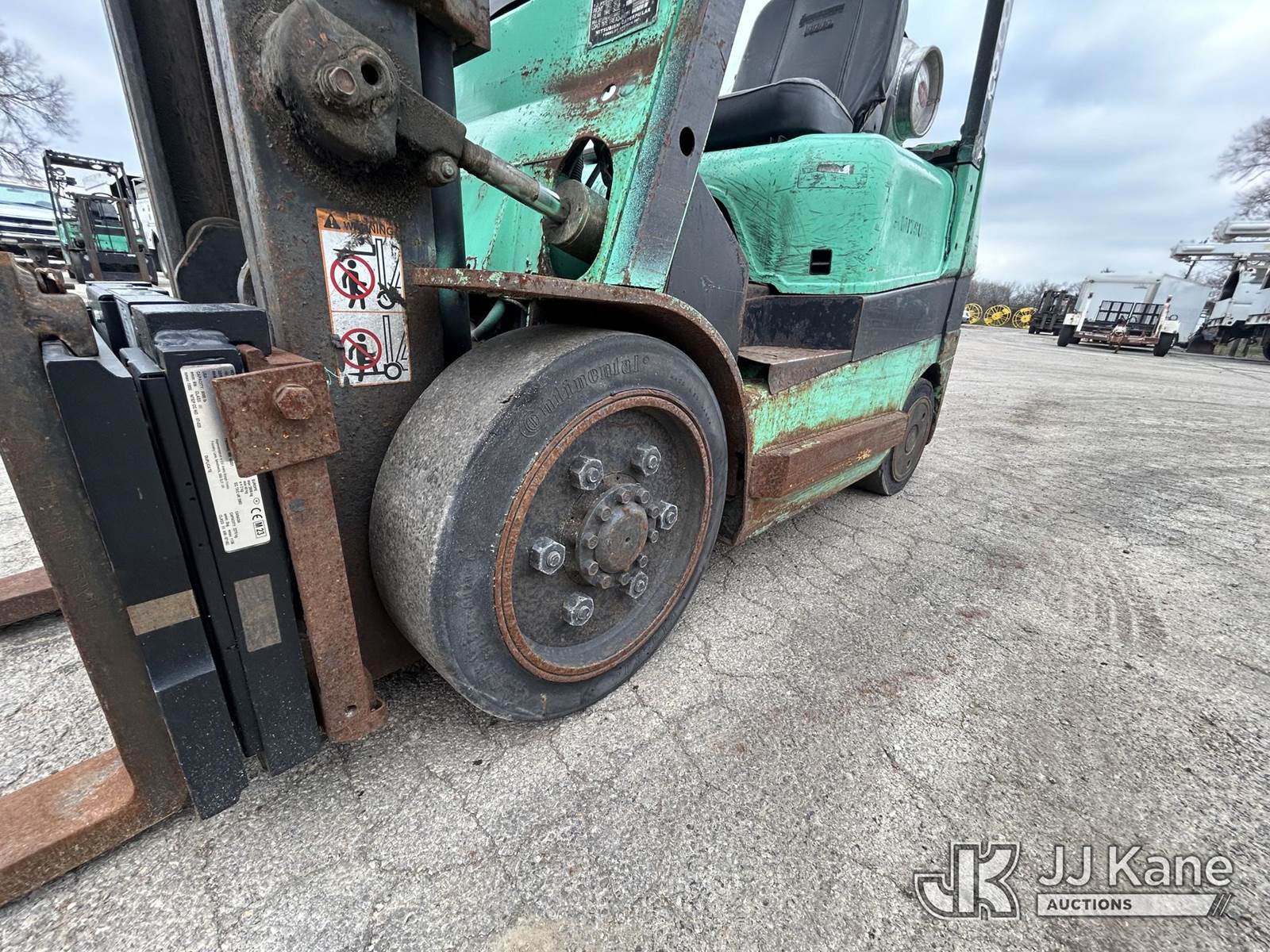 Mitsubishi FGC25K Solid Tired Forklift, s/n AF82D02926, Mitsubishi LPG, Shuttle, with 5,000 lb. lift capacity, 80 in mast height & ROPS, (Runs, Moves & Operates) (LPG Tank Not Included) (Reads 19,093 hours) NOTE: This unit is being sold AS IS/WHERE IS via Timed Auction and is located in South Beloit, IL. Inspection & preview days for this unit are the 2 business days prior to the first day of items closing for this auction, item is located at 14354 Dearborn Ave South Beloit, IL and hours of operations are 8a-4p. For pre-sale questions, please contact Derek Eklund at (608) 904-0618 or (derek.eklund@jjkane.com). (Buyer is responsible for removal. Assistance by consignor or JJ Kane Auctions is not assured.)