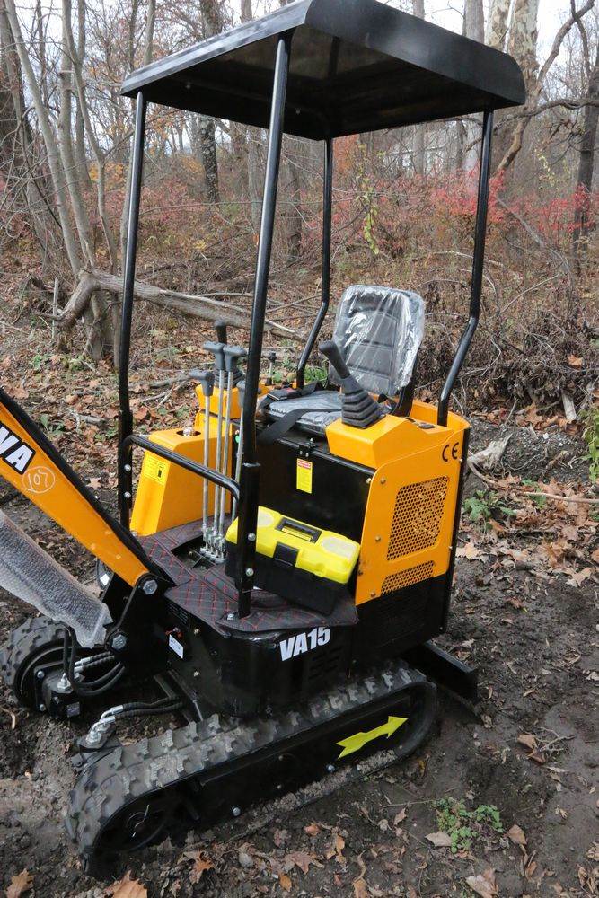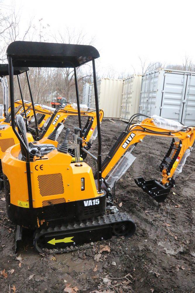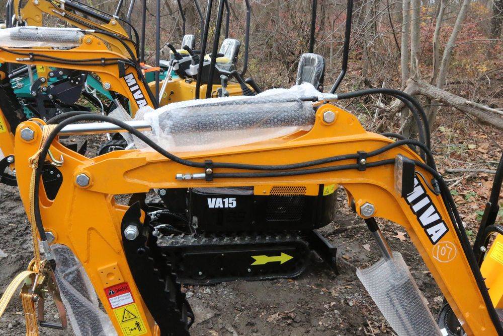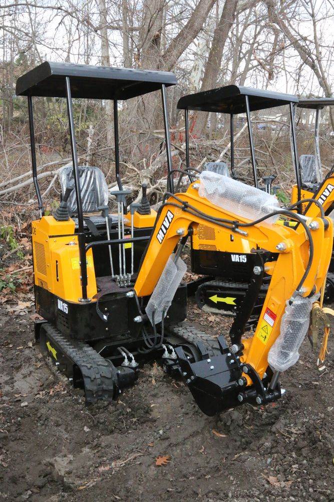 New MIVA mini excavator model: VA15, 13.5hp Briggs and Stratton gas engine, w/ thumb, Hydraulic Boom & Bucket Controls, bucket, with canopy and support bars. Hours reading less than one hour.