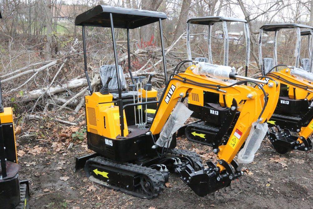 New MIVA mini excavator model: VA15, 13.5hp Briggs and Stratton gas engine, w/ thumb, Hydraulic Boom & Bucket Controls, bucket, with canopy and support bars. Hours reading less than one hour.