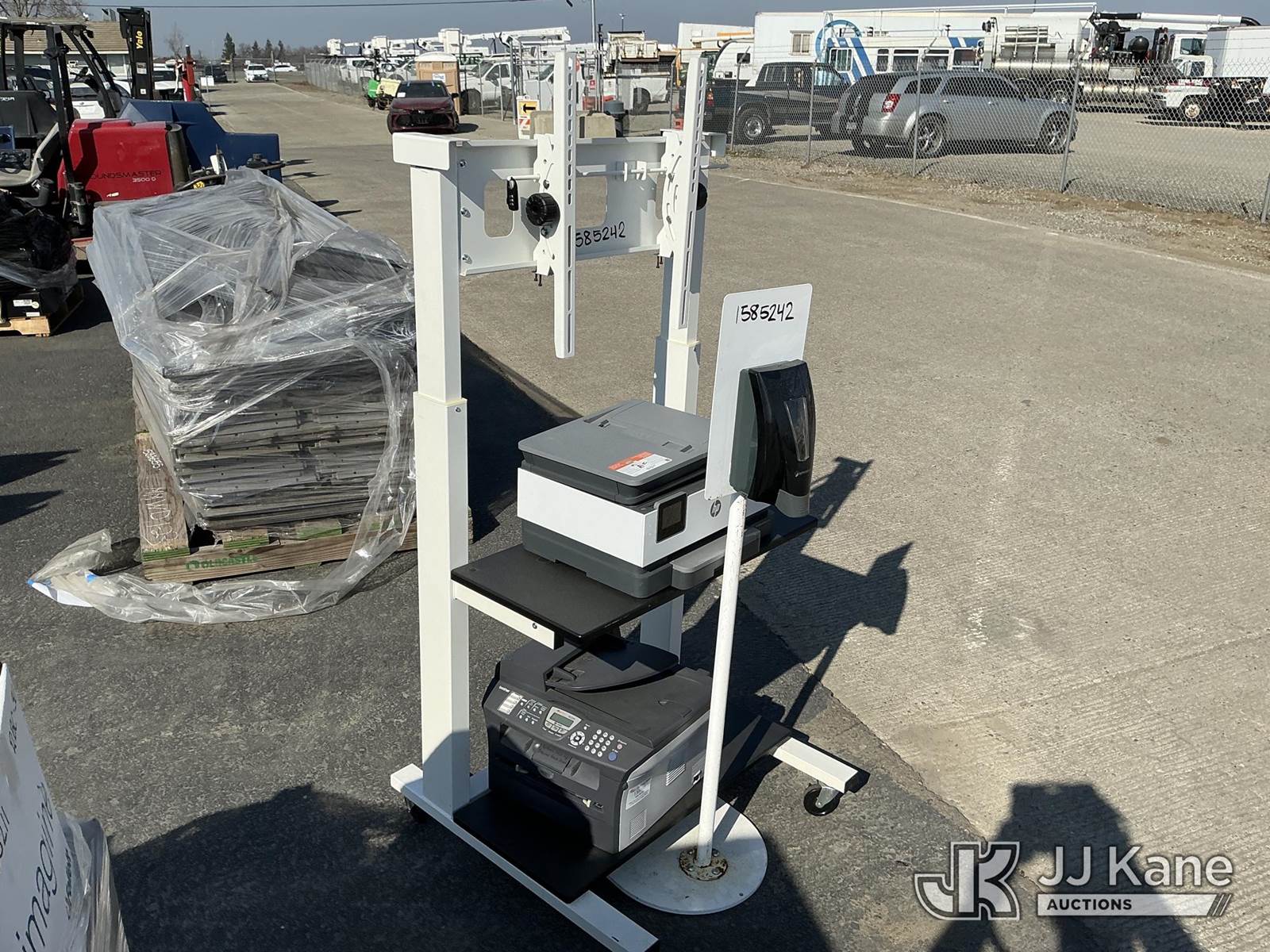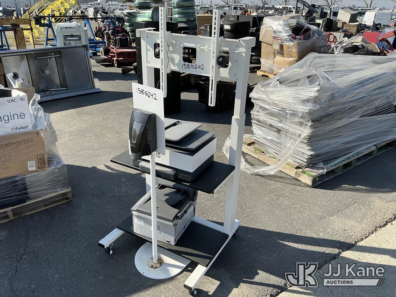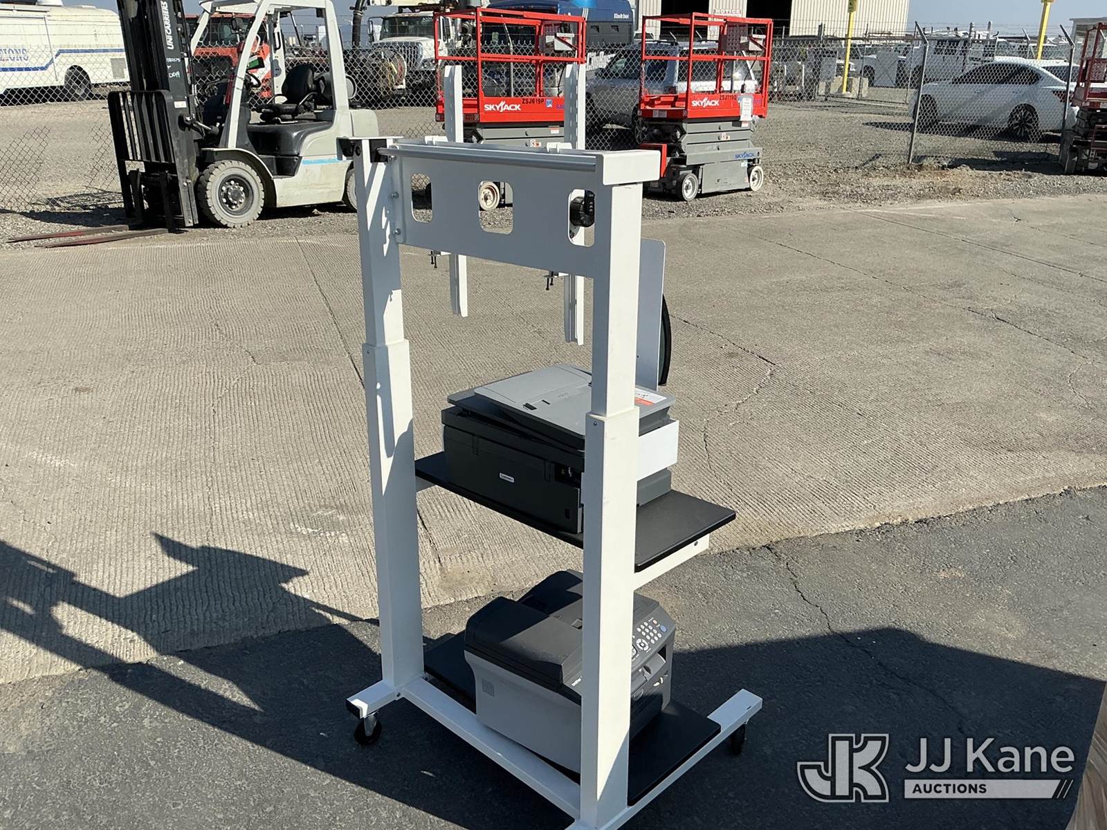 Mobile TV Stand, Printers, Hand Sanitizer Stand (Used ) NOTE: This unit is being sold AS IS/WHERE IS via Timed Auction and is located in Dixon, CA. Inspection & preview days for this unit are the 2 business days prior to the first day of items closing for this auction, item is located at 8668 Sparling Ln Dixon, CA 95620 and hours of operations are 8a-4p. For pre-sale questions, please contact JJ Kane Staff at (707) 678-8060 (dixon@jjkane.com). Dealer License Number 45696. (Buyer is responsible for removal. Assistance by consignor or JJ Kane Auctions is not assured.)