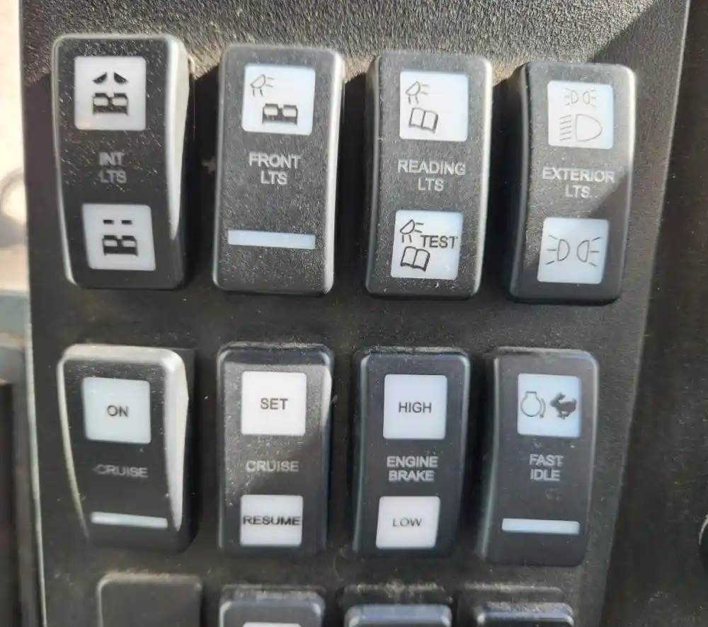 (Used) 2021 MCI D4505, MISCELLANEOUS DASH SWITCHES- Controls: Int Lts, Front Lts, Reading Lts, Exterior Lts, Cruise On, Cruise Set-Resume, Engine Brake, Fats Idle, Rear Rise, Atc, Ignition, Material: Plastic, For more information about this item, give us a call. We ship Worldwide! (CRG HEAVY TRUCK PARTS) 929 W PULASKI HWY ELKTON, MD 21921, Material: Plastic