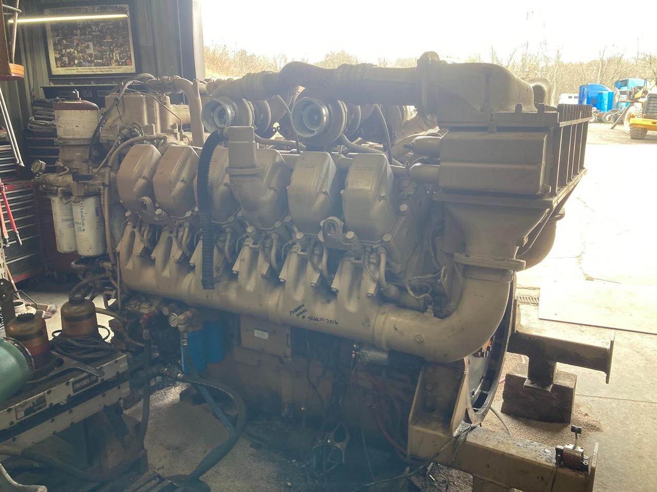 GOOD USED MTU 12V4000 DIESEL TAKEOUT ENGINE FOR SALE at ADELMAN’S TRUCK PARTS in CANTON, OHIO. 12,432 HOURS SHOWING ON ECM, RUN TESTED, T123-7K39 MODEL #, 2250 HP @ 1960 RPM, DDEC, TIER 1 EMISSIONS, COMON RAIL, with 85+ LBS OIL PRESSURE.