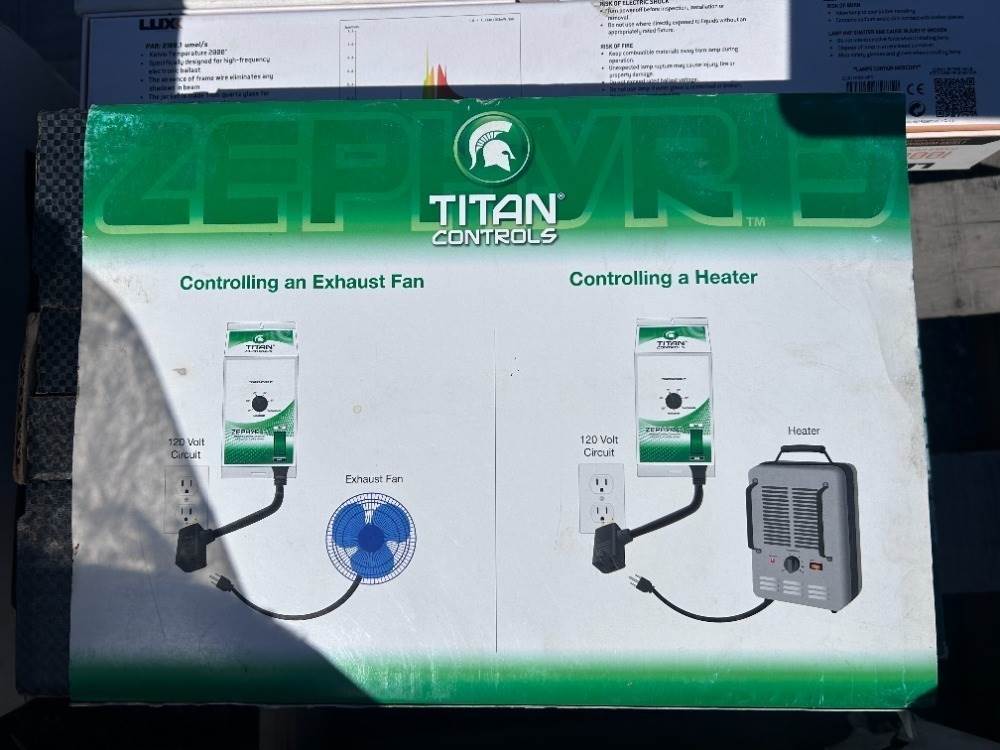 MULTIFAN VENTILATION FAN, APPROX. (3) KFI 10" FLANGES, APPROX. (4) LUX 1,000 WATT LIGHT BULBS, CO2 GENERATOR, IDEAL AIR DEHUMIDIFIER, APPROX. (2) TITAN EXHAUST FAN CONTROLS, WATER CHILLER --(LOCATED IN COLTON, CA)--