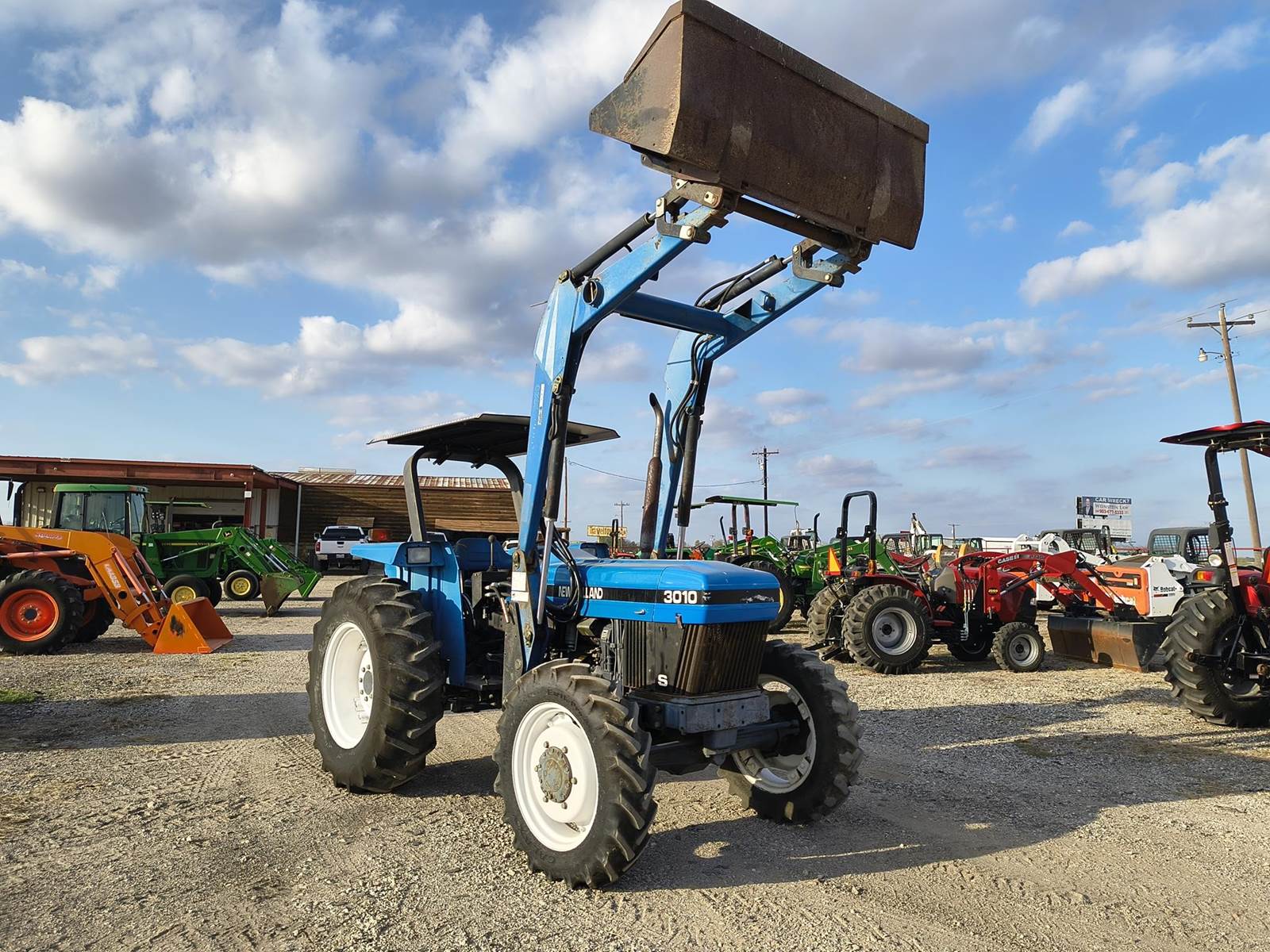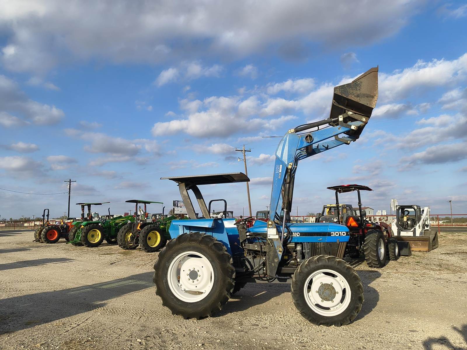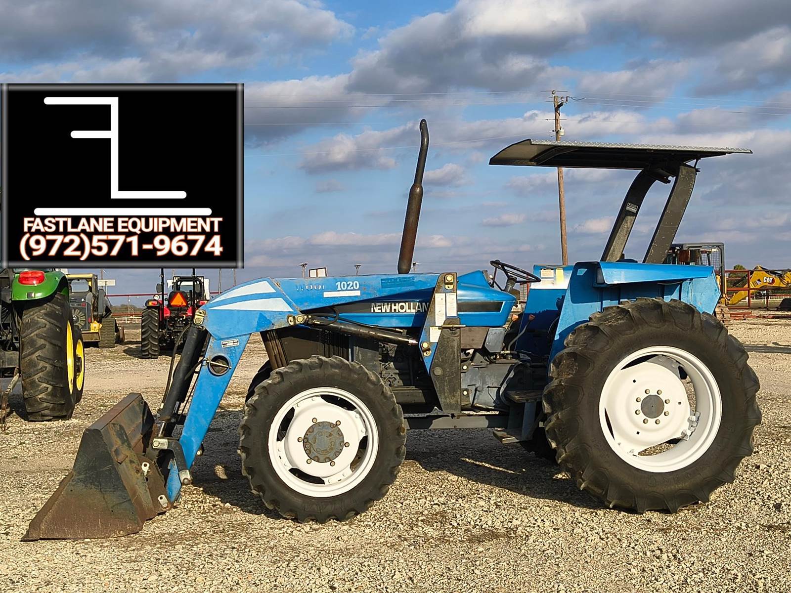 1999 NEW HOLLAND 3010 UTILITY TRACTOR. ONE OF THE BEST FORD/NH MODELS EVER BUILT. 55hp PRE EMISSIONS DIESEL. 8 SPD GEAR DRIVE TRANSMISSION. 4WD. REAR HYDRAULIC REMOTE. QT LOADER WITH SKID STEER STYLE QT BUCKET. CANOPY. VERY STRAIGHT MACHINE. ONLY 5XX HRS READING ON METER. ALWAYS CALL FOR CURRENT AVAILABILITY. COMPETITIVE FINANCING AVAILABLE W.A.C. (no in-house) TROUGH OUR DIRECT WEBSITE ONLY AT WWVV.FASTLANEEQUIP.C0M. CALL (972)57I-9674 OR (972)57I-lO55 TODAY.