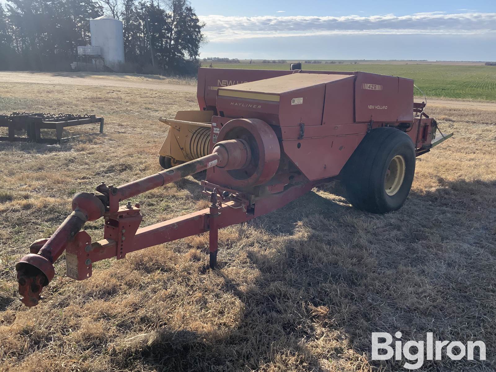 New Holland 426 Small square Baler, 16”X18” Bales, 540 PTO, 11L-15 Front Tires, 16.5-16.1SL Rear Tires, Ball Hitch, wire tie Bale Wrap, 2 Knotters, 65” Pickup, 2 spools wire unused, SN: 743729