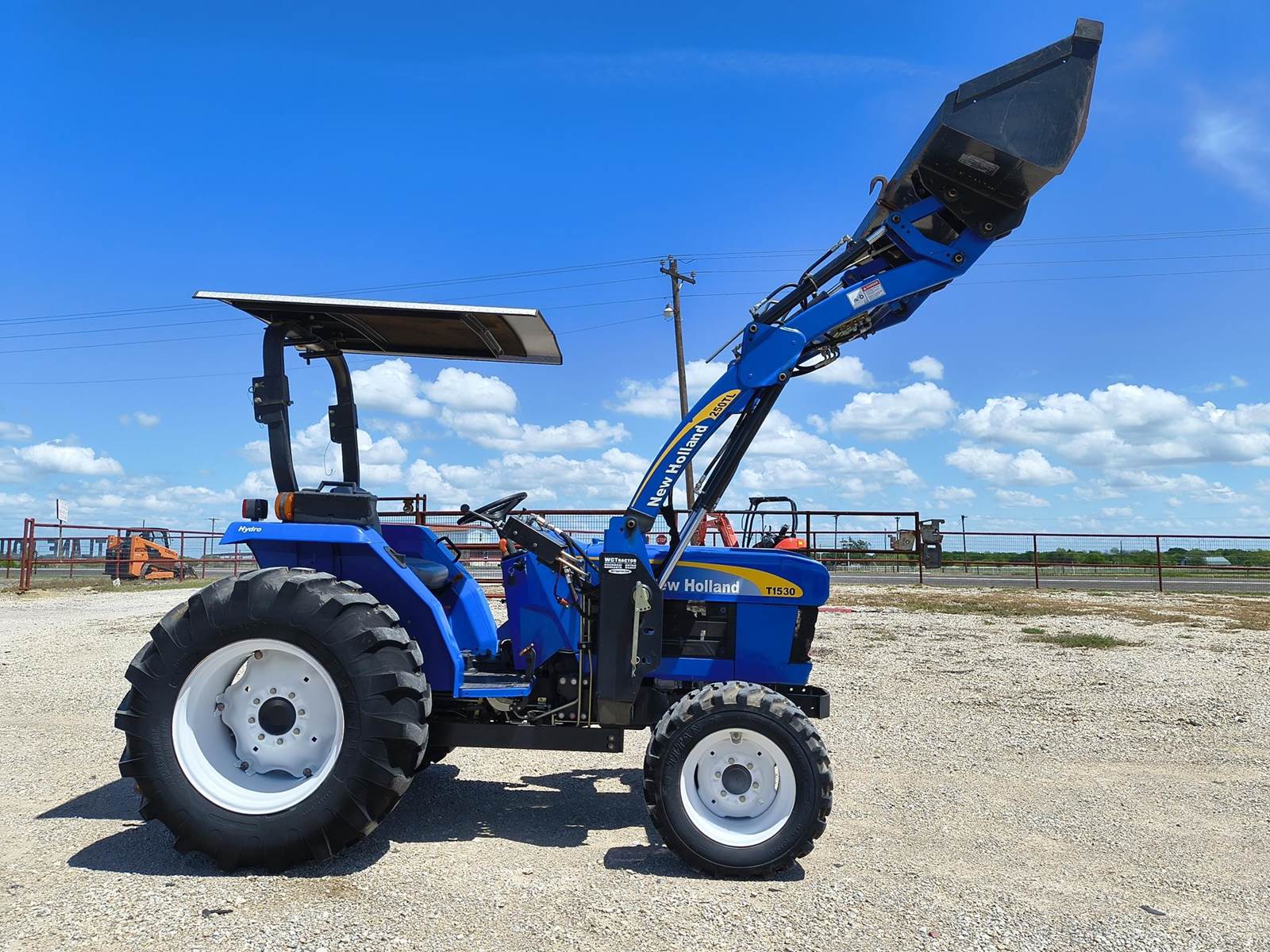 2013 NEW HOLLAND T1530 UTILITY TRACTOR. ONE OF THE CLEANEST AROUND. 1 OWNER. ONLY 142 ORIGINAL HOURS ON WORKING METER. 45 HP PRE EMISSIONS DIESEL. NO ECM OR COMPUTER. AUTOMATIC HYDROSTATIC TRANSMISSION. R4 INDUSTRIAL TIRES. 4WD. QUICK DETACH LOADER. CANOPY. ALWAYS BARN KEPT. ALWAYS CALL FOR CURRENT AVAILABILITY. COMPETITIVE FINANCING AVAILABLE W.A.C. (no in-house) TROUGH OUR DIRECT WEBSITE ONLY AT WWVV.FASTLANEEQUIP.C0M. CALL (972)57I-9674 OR (972)57I-lO55 TODAY.