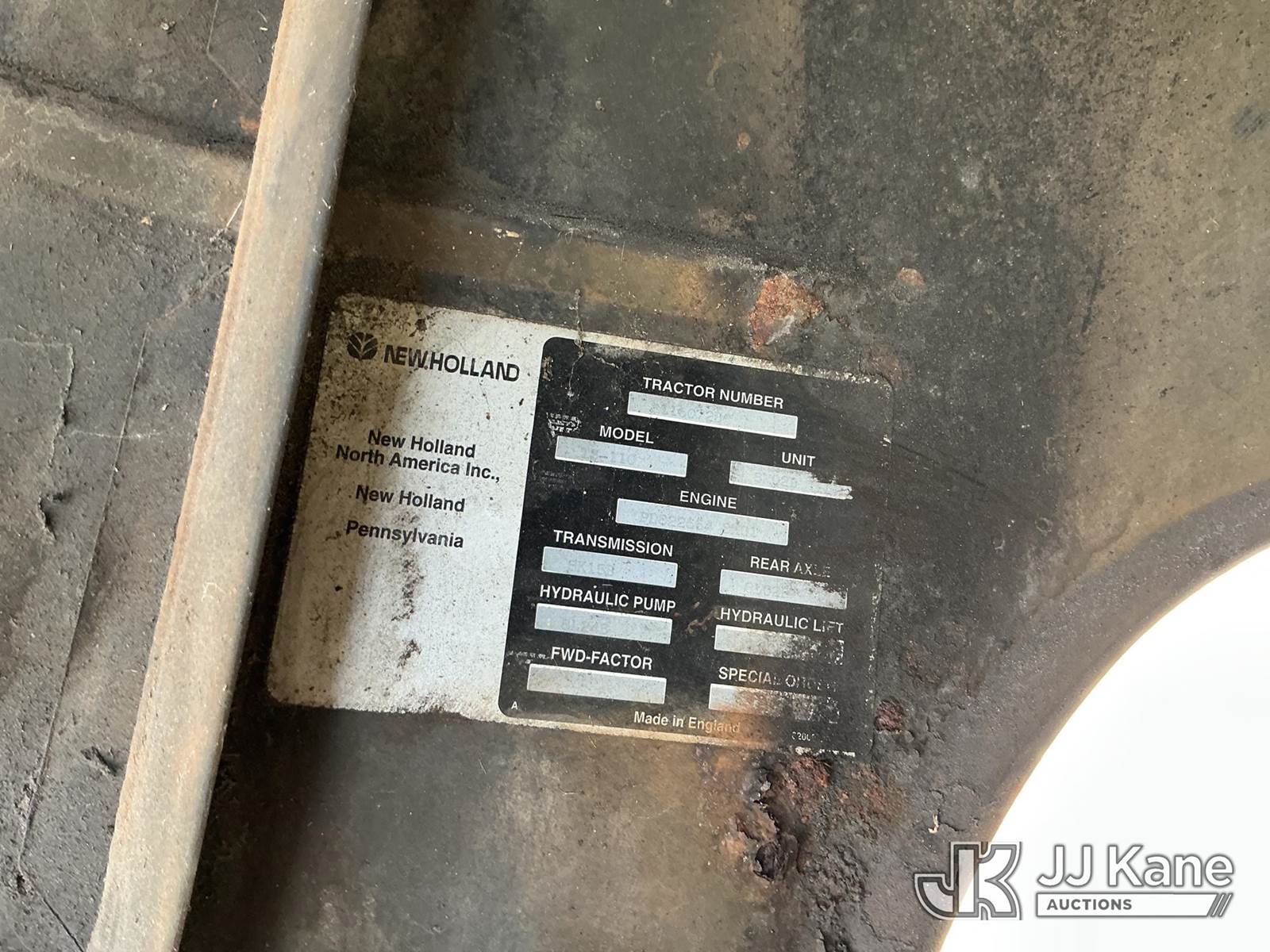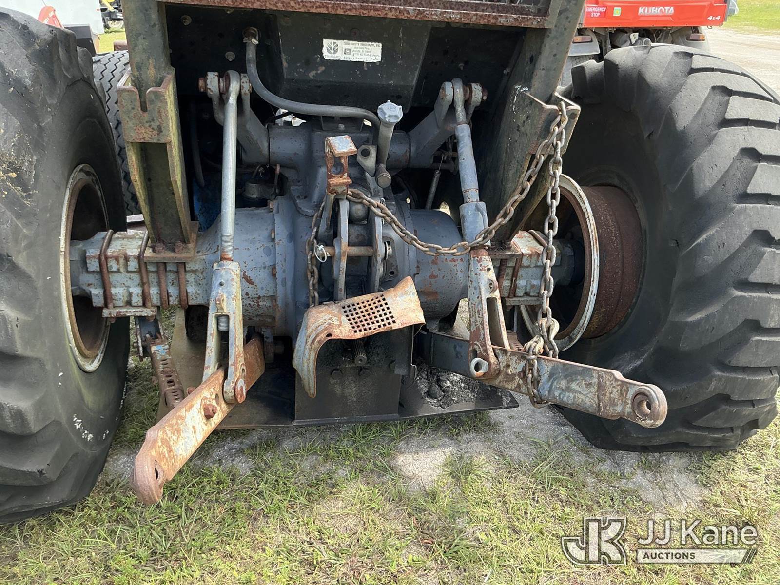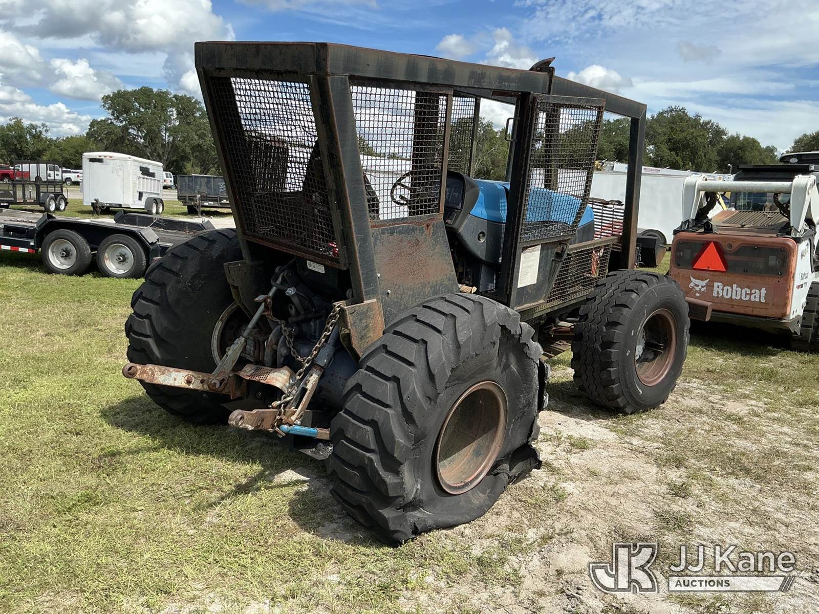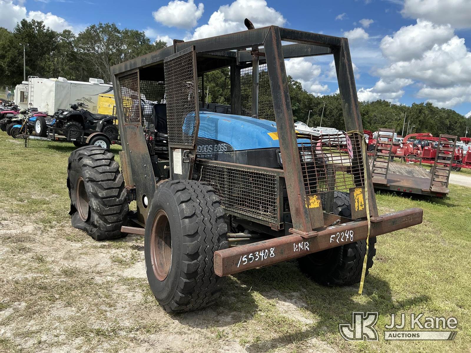 New Holland TS110 Rubber Tired Utility Tractor, N.H. 8-spd, diesel, with PTO, 2-point hitch, Woods Boss Forestry Package & ROPS w/sweeps, (Not Running, Condition Unknown) (Flat Tire, Paint, Rust & Body Damage) (Reads 2,547 hours) NOTE: This unit is being sold AS IS/WHERE IS via Timed Auction and is located in Thonotosassa, FL. Inspection & preview days for this unit are the 2 business days prior to the first day of items closing for this auction, item is located at 11720 N US 301 Thonotosassa, Fl 33592 and hours of operations are 8a-4p. For pre-sale questions, please contact Office Staff @ (813) 986-2485. (Buyer is responsible for removal. Assistance by consignor or JJ Kane Auctioneers is not assured.)