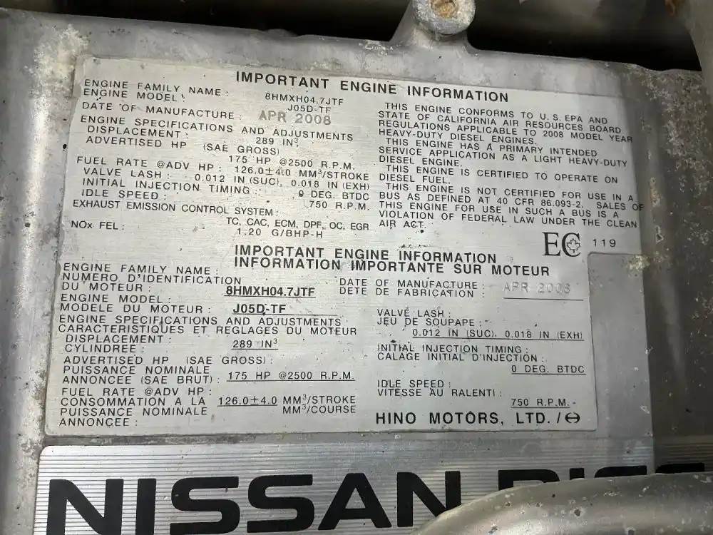 Nissan J05D-TA Engine for a 2008 Ud/Nissan UD1400