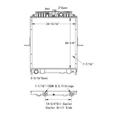 2008-10 Nissan1800/2000/3300 Plastic/Aluminum Radiator With Framework Design Style Plastic/Aluminum W/Frame Height 28 3/8 Width 24 13/16 Depth 1 7/16 Inlet 2 inch connection Outlet 2 3/16 con