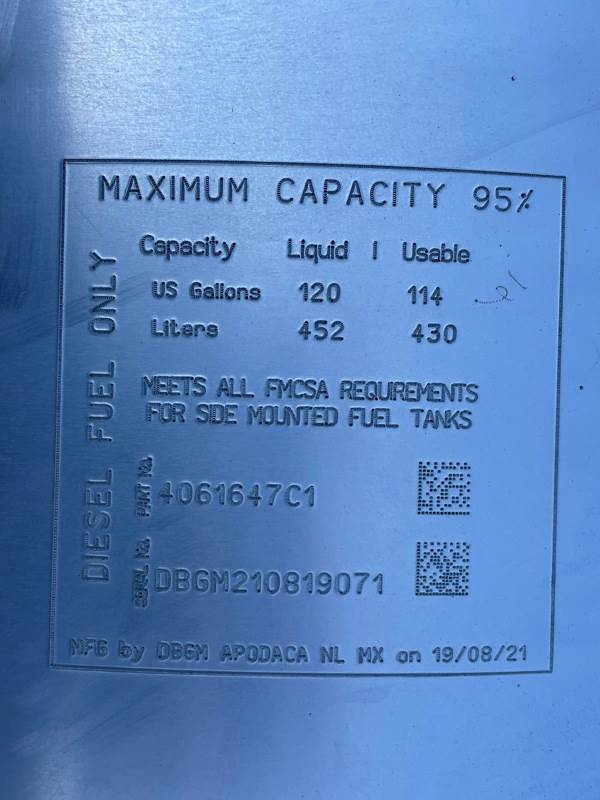 NTO International Fuel Tank, Side: Passenger, 120 Gallons, Length: 55.00", Height: 26.00", Material: Aluminum, Steps: No, Shape: Round