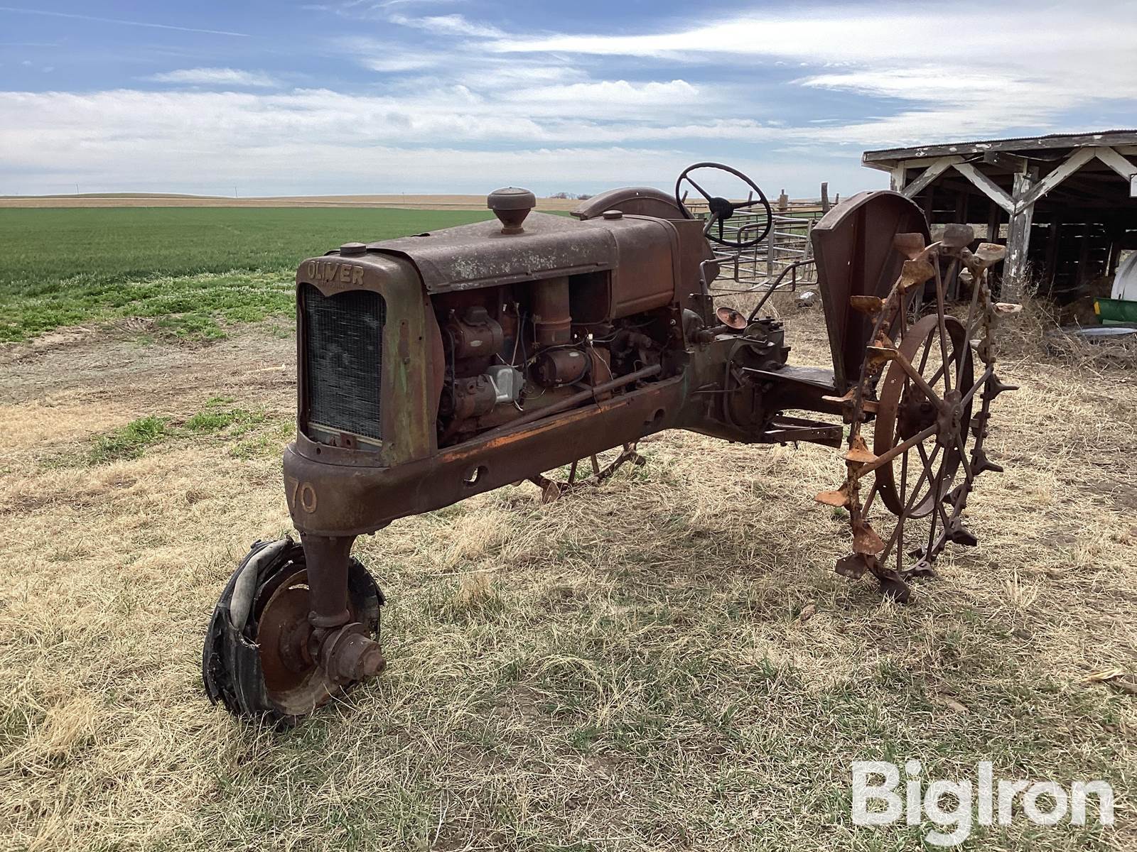 Oliver 70 2WD Tractor For Parts, Steel wheels, front tires flat, NOT OPERATIONAL DAY OF LISTING