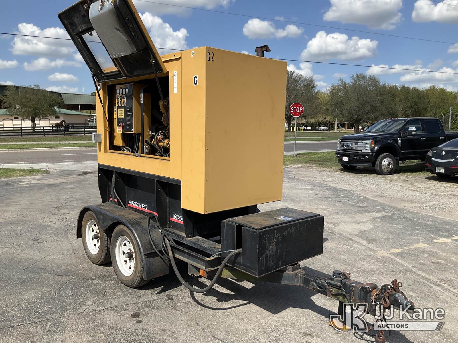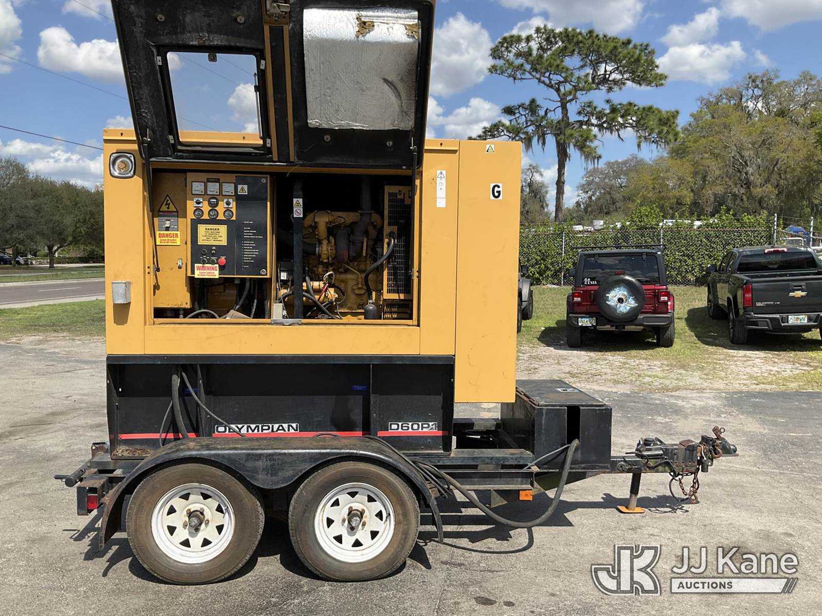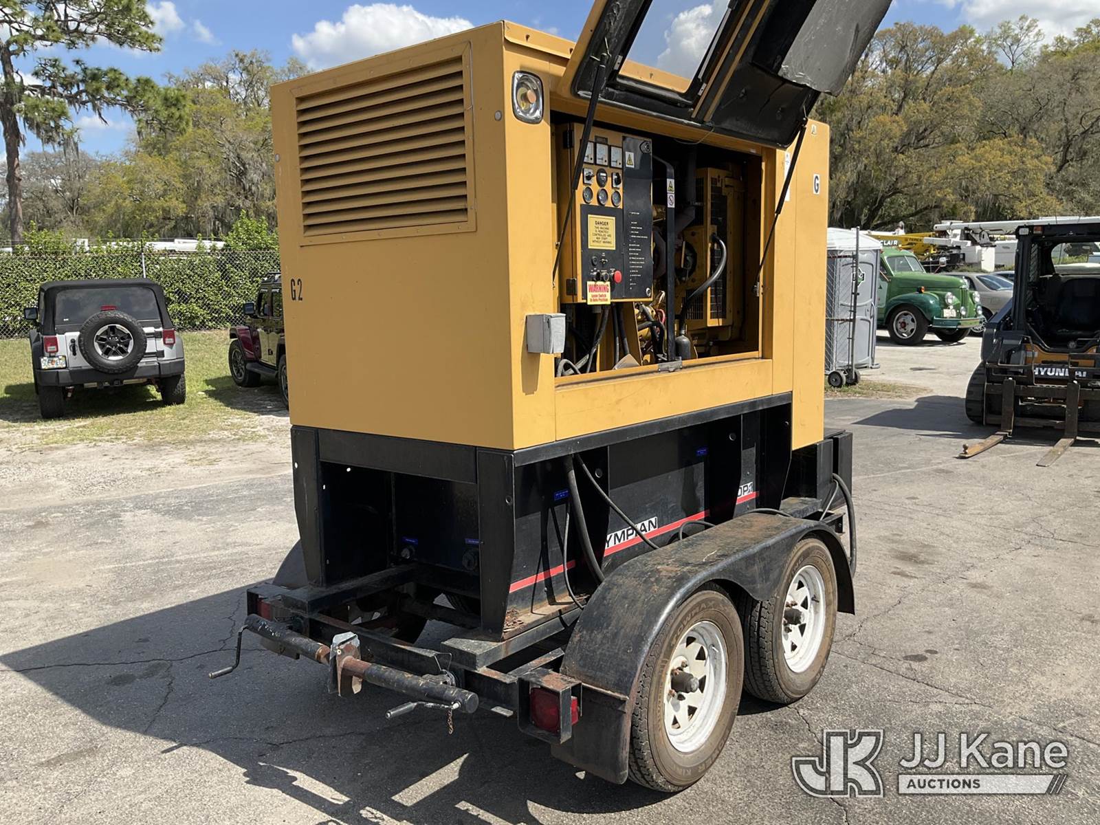 Olympian D60P1 Generator, s/n 00000000CTX010618, Perkins diesel, trailer mtd (No Title) (Runs) (Rust Damage) (Reads 1,293 hours) NOTE: This unit is being sold AS IS/WHERE IS via Timed Auction and is located in Ocala, FL. Inspection & preview days for this unit are by appointment only; please contact us at contact@jjkane.com or 84-Go-JJKane for more details. For more information & removal arrangements please contact Mike Lessard @ (352) 629-6677. (Buyer is responsible for removal. Assistance by consignor or JJ Kane Auctions is not assured.)
