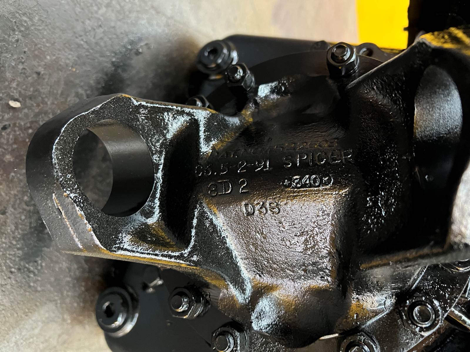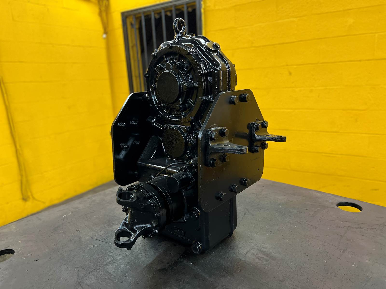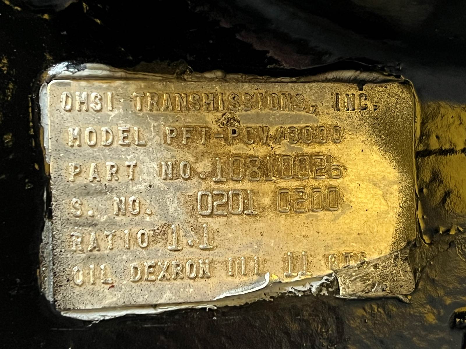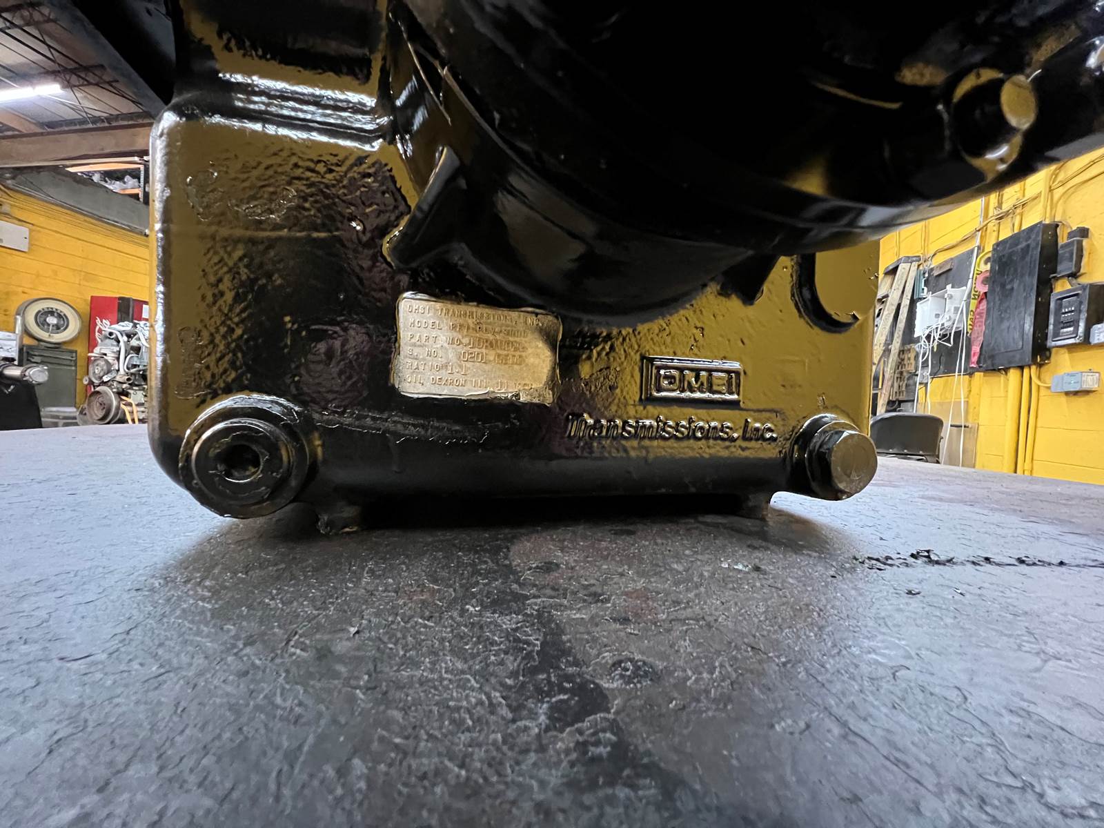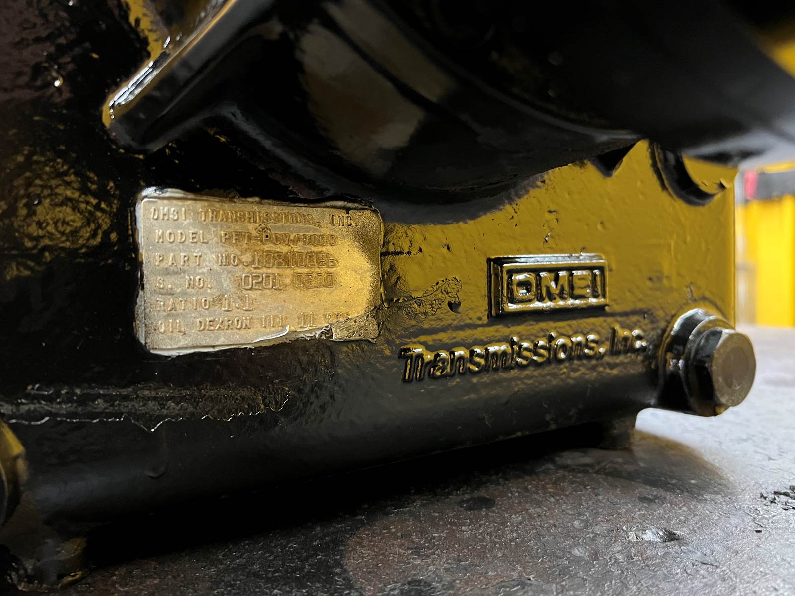 (GOOD USED) OMSI PFT-PCV/3000 Transfer Case For Sale, Model: PFT-PCV/3000, Part # 10810026, RATIO: 1.1, DEXRON III Oil, Mounting Part # 680-224-40, 01-23360, PAT. 4522508, Spicer Yolk Part # C6.5–91, Serial # 0201-0200, Stock # 9993
