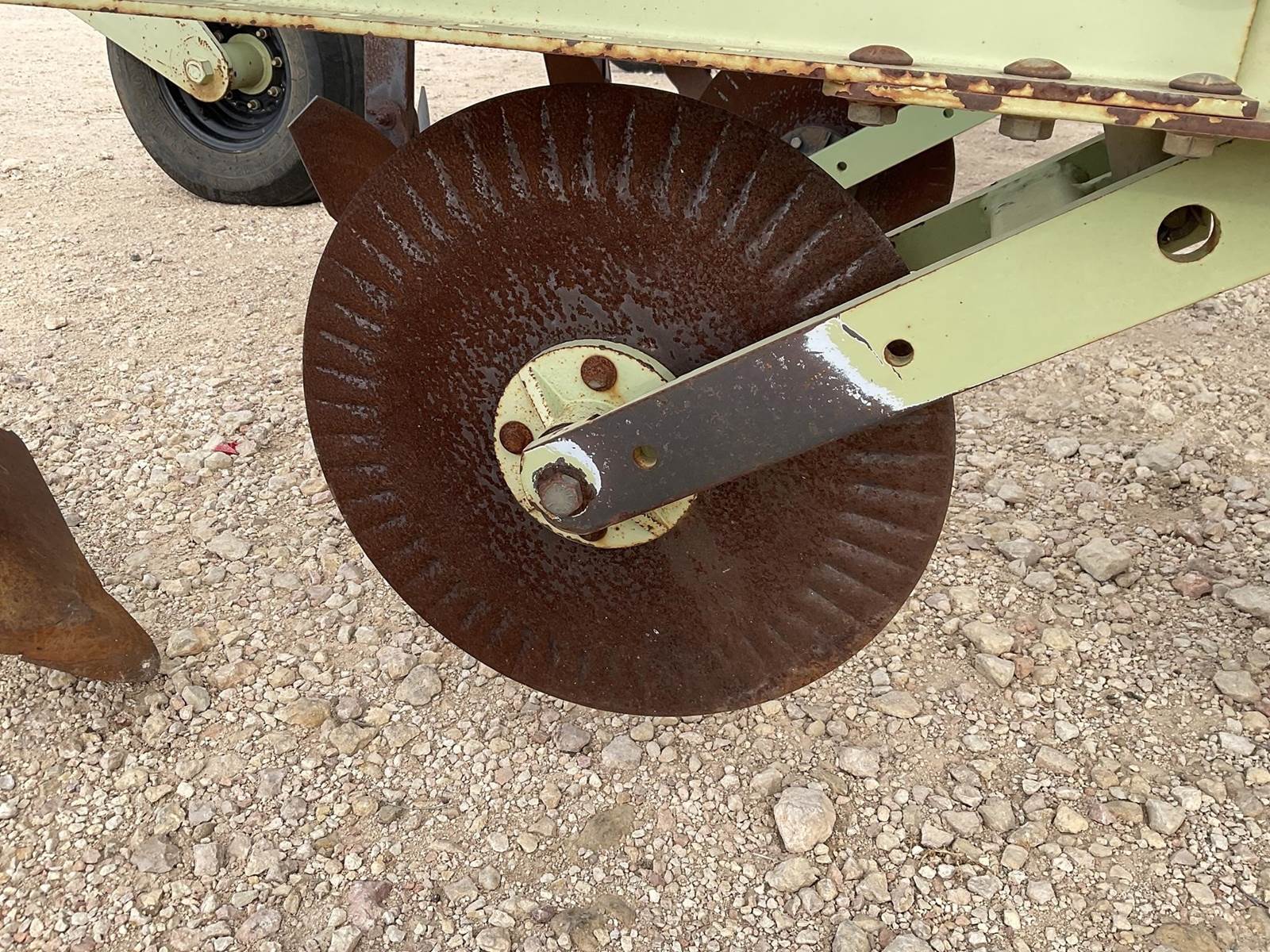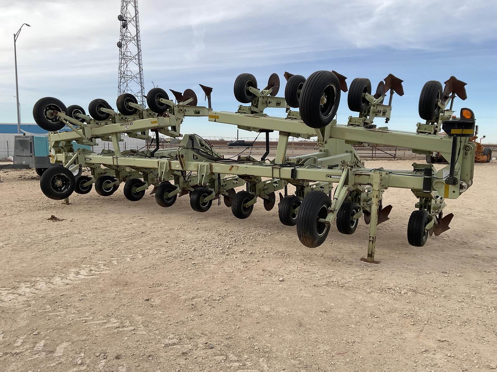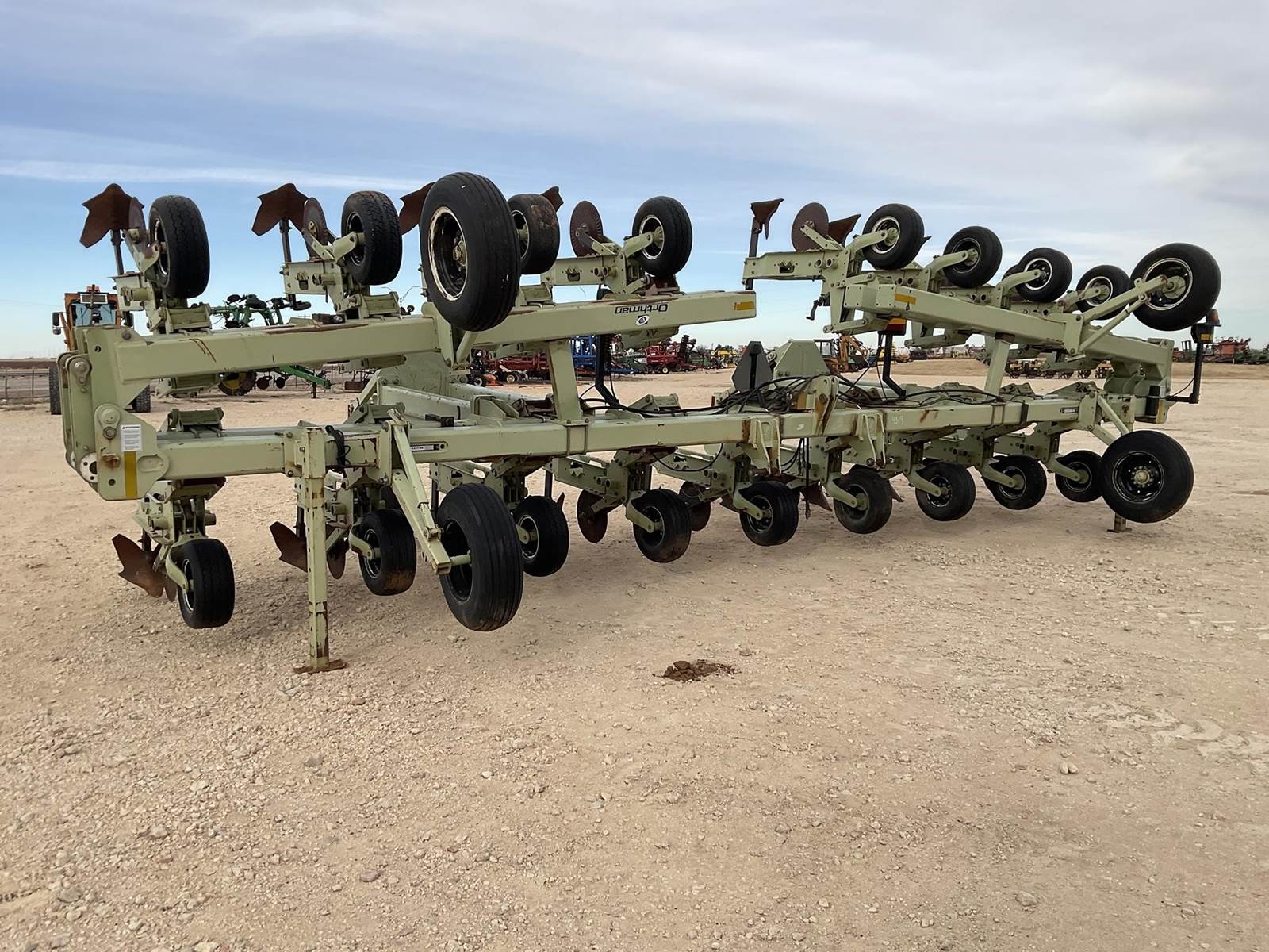 Orthman 16 row 40’’ row crop cultivator. It does not have the shields or barring off disc. Has the lift assist on the back. Coulters and busters look to be in good shape. So do all the press wheels up front. It does have some welding around the hitch, see pictures. 6 of the units have had to be heated up in the past where the bushings seized up, see pictures. Nice cultivator!