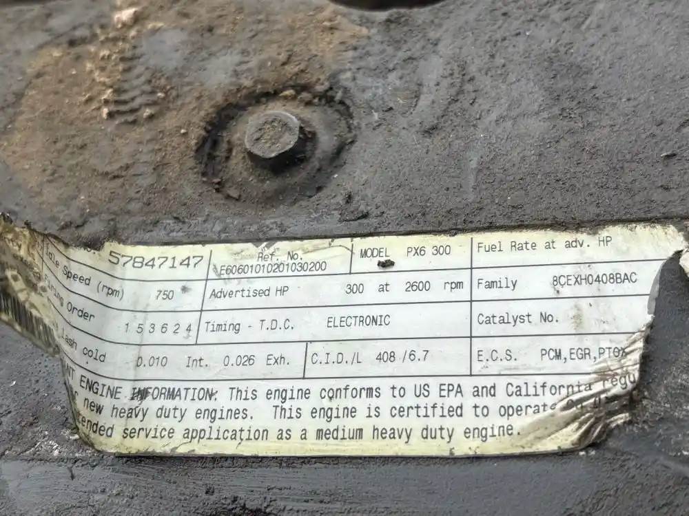 (Core) ENGINE Does Turn 360 degrees complete , 2008 PACCAR PX-6, ENGINE ASSEMBLY- Family Number: 8CEXH0408BAC, Displacement: 6.7L, Horsepower: 300, Ar.No./CPL: 0279, Serial Number: 57847147, Part Number: E60601010201030200, E.C.S: PCM, EGR PTOX, Reference images for condition For more information about this item, give us a call. We ship Worldwide! (CRG HEAVY TRUCK PARTS) 929 W PULASKI HWY ELKTON, MD 21921, Serial#: 57847147, Horse Power: 300, Casting#: 25235