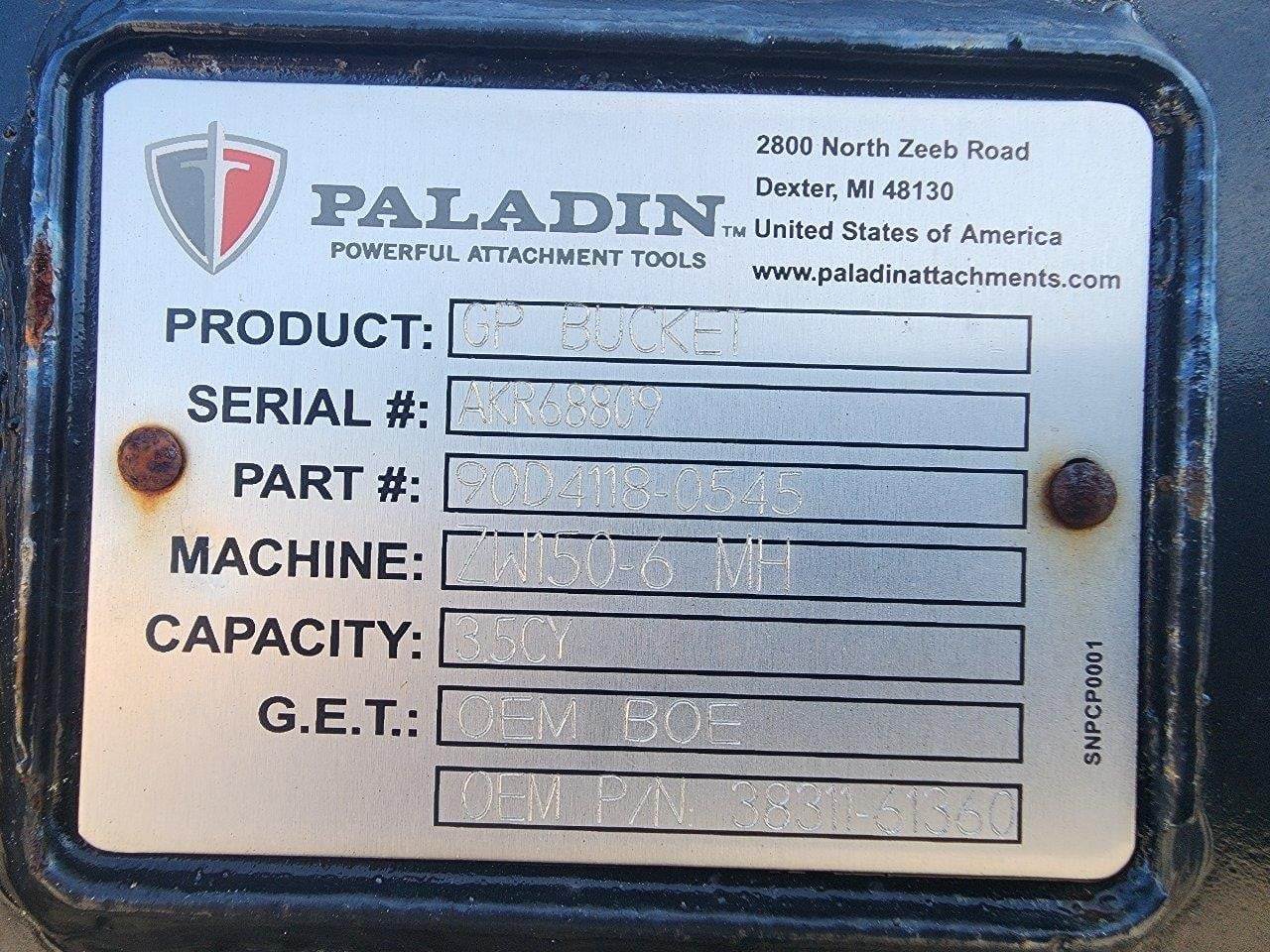 Paladin 101" WIDE 3.5 YARD ZX150-6 Bucket