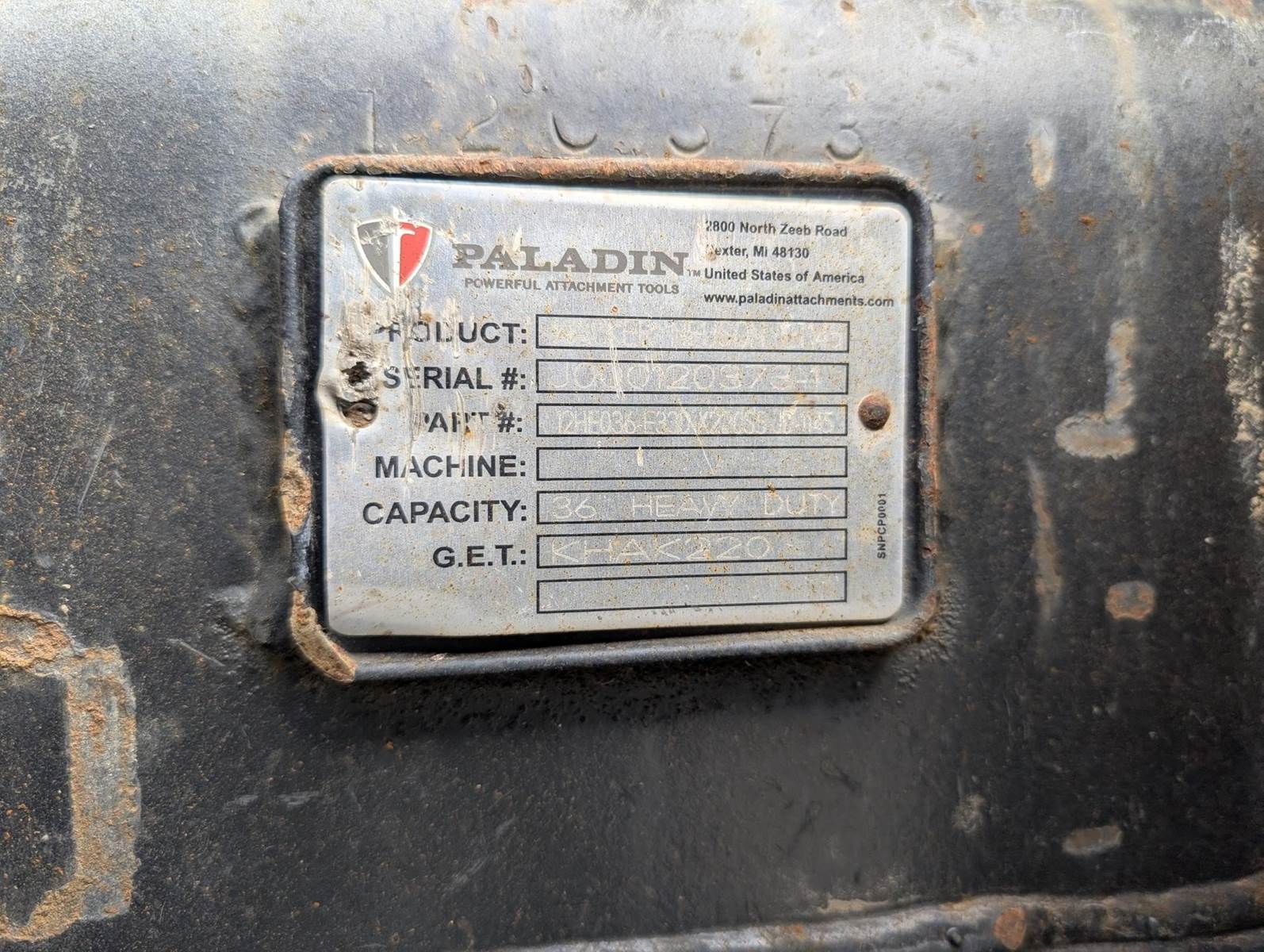 36" Paladin Excavator Bucket; 65 mm Pins, 10" Stick Width, 15" C-2-C