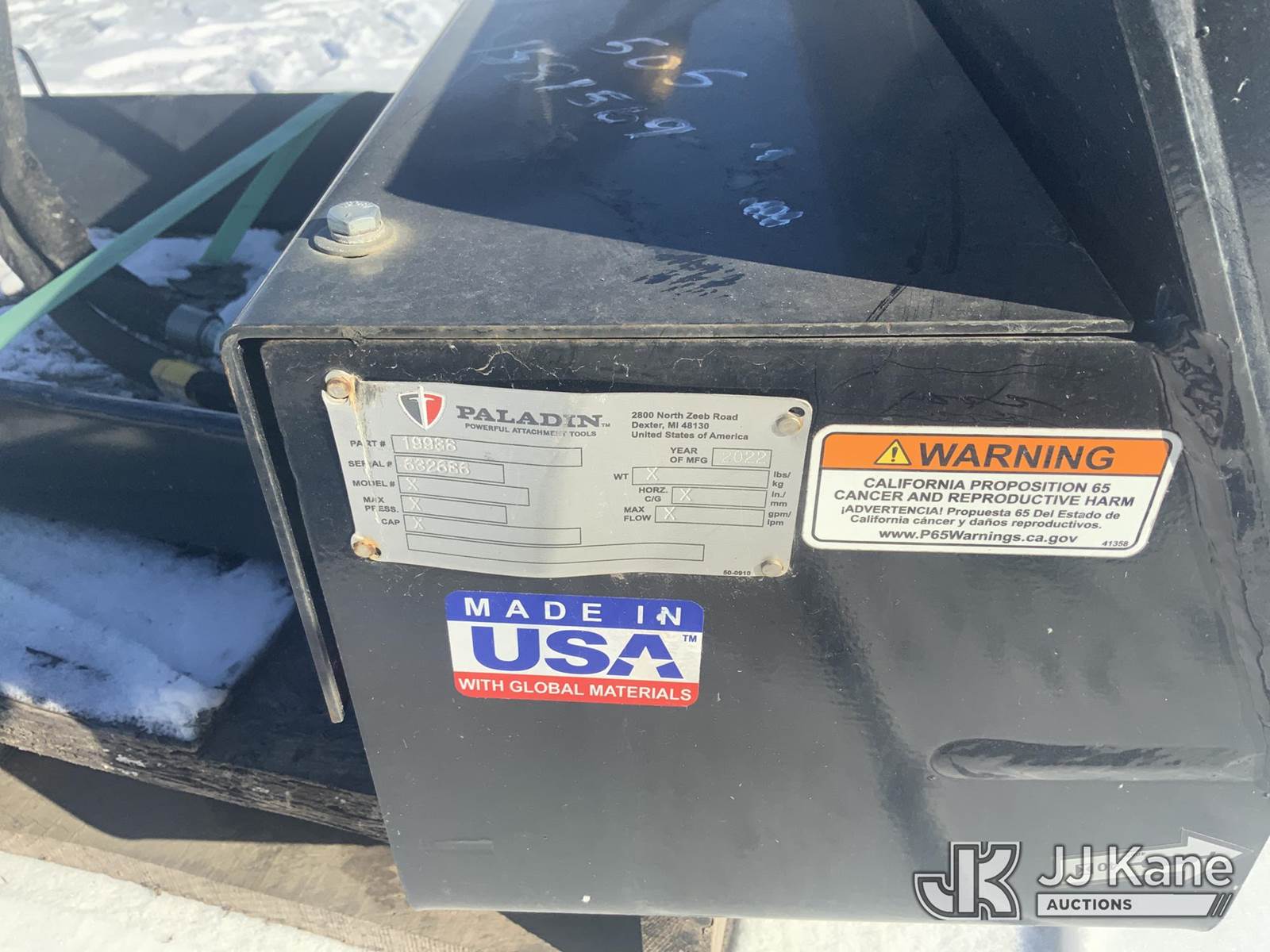 Paladin Tree Fork Attachment, Ser. # 632686 (Condition Unknown) NOTE: This unit is being sold AS IS/WHERE IS via Timed Auction and is located in Fort Wayne, IN. For more information & removal arrangements please contact Office Staff @ (260) 450-9822. Load out by appointment only, Buyer/Hauler must present copy of paid invoice upon arrival. Purchaser acknowledges ALL lots must be removed within (10) business days of Auction, or a storage fee may be incurred. For load out and pick up information, please reference the hauler sheet sent out after purchase. (Buyer is responsible for removal. Assistance by consignor or JJ Kane Auctions is not assured.)
