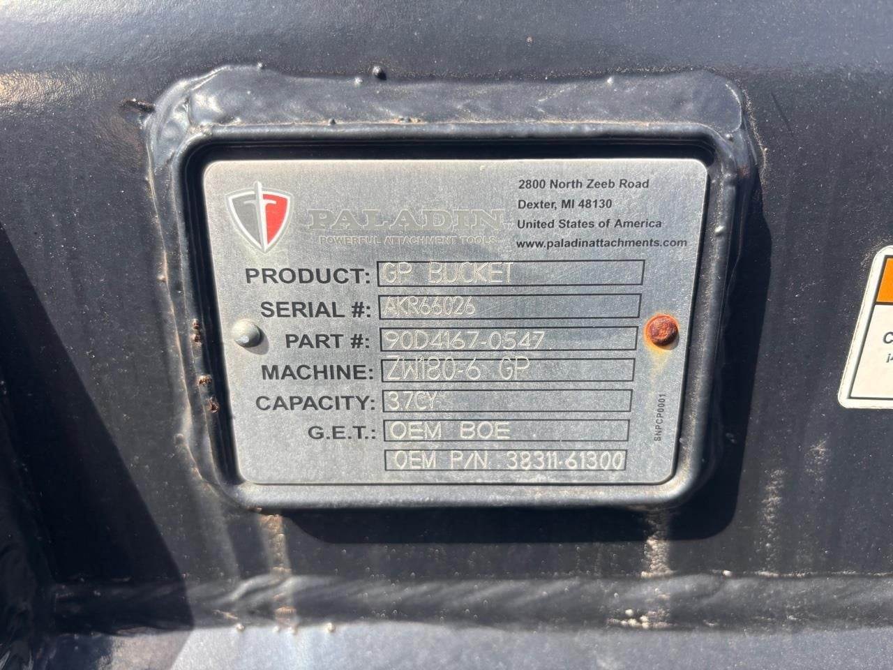 3.7 yard pin on bucket ZW180-6 107" wide, call for more info