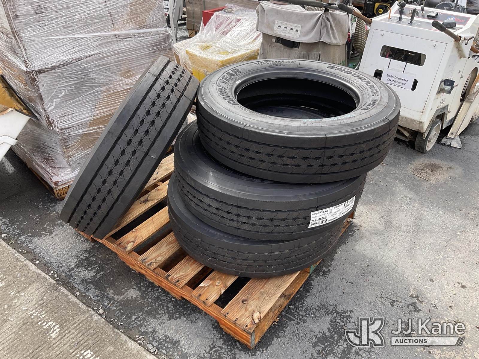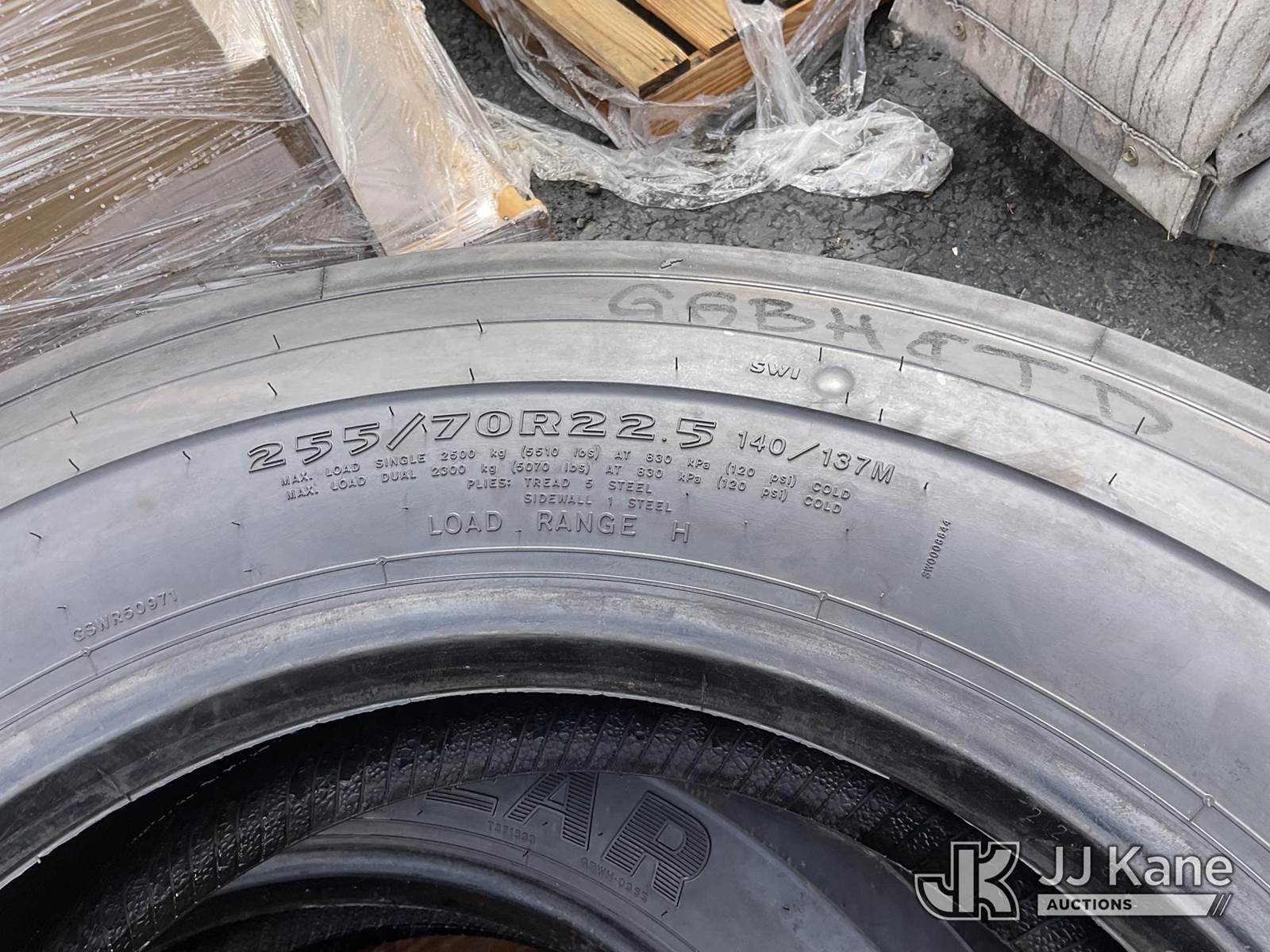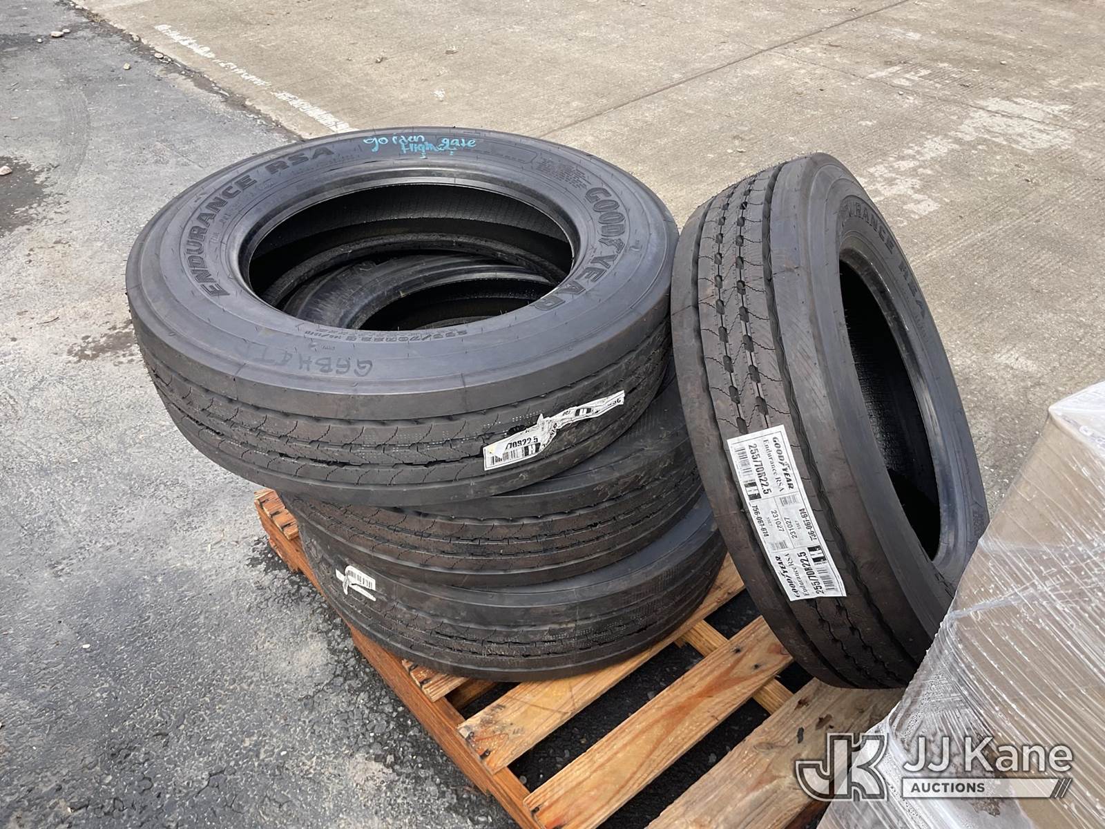 Pallet of Tires, 225/70R22.5 (New) NOTE: This unit is being sold AS IS/WHERE IS via Timed Auction and is located in Dixon, CA. Inspection & preview days for this unit are the 2 business days prior to the first day of items closing for this auction, item is located at 8668 Sparling Ln Dixon, CA 95620 and hours of operations are 8a-4p. For pre-sale questions, please contact JJ Kane Staff at (707) 678-8060 (dixon@jjkane.com). Dealer License Number 45696. (Buyer is responsible for removal. Assistance by consignor or JJ Kane Auctioneers is not assured.)