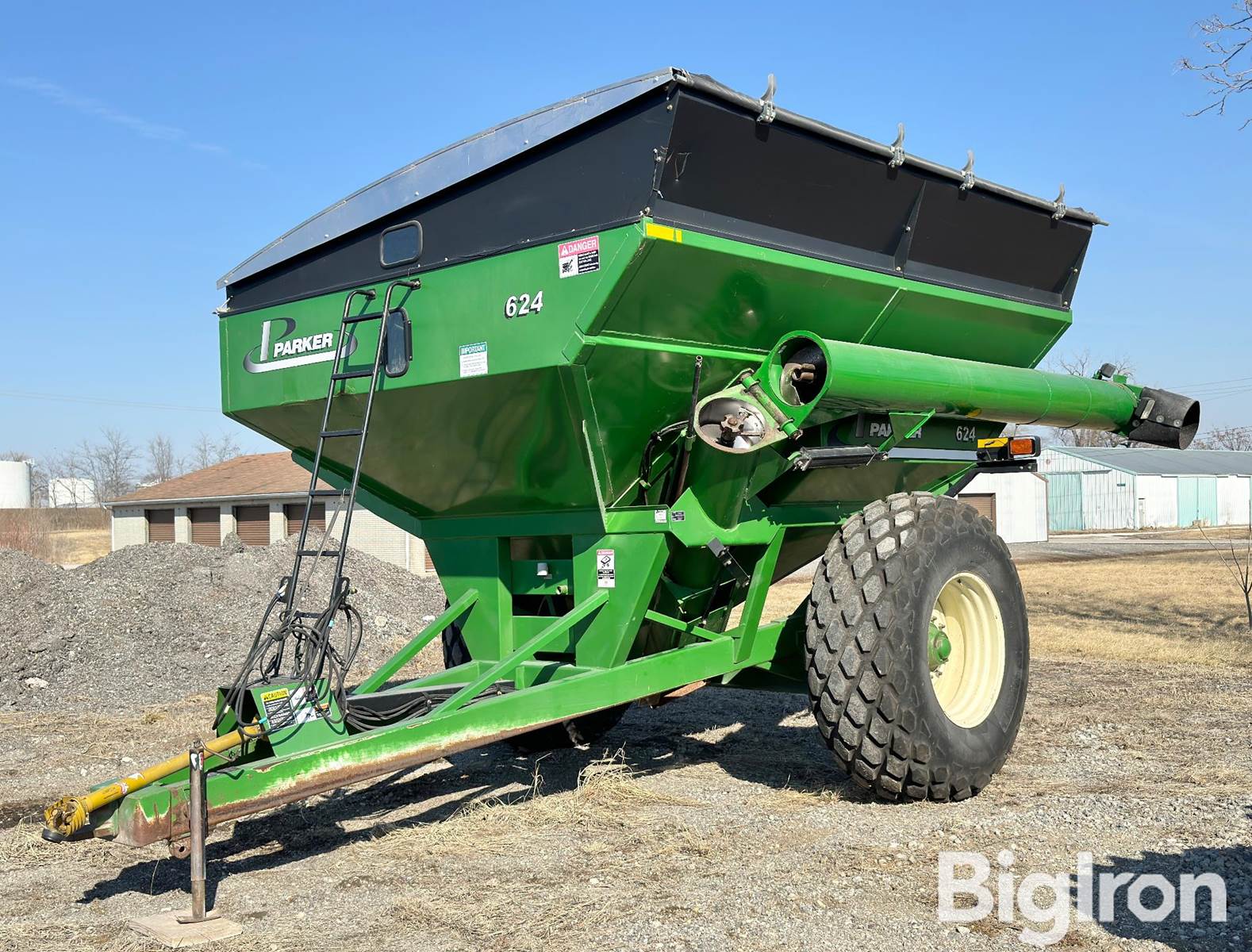 Parker 624 Grain Cart, 14" Corner Auger, Small 1000 PTO, Clevis Hitch, Manual Lever Cleanout Door, 2025 Brumleve Roll Tarp System, 24.5-32 Diamond Tread Tires, SN: B21660115
