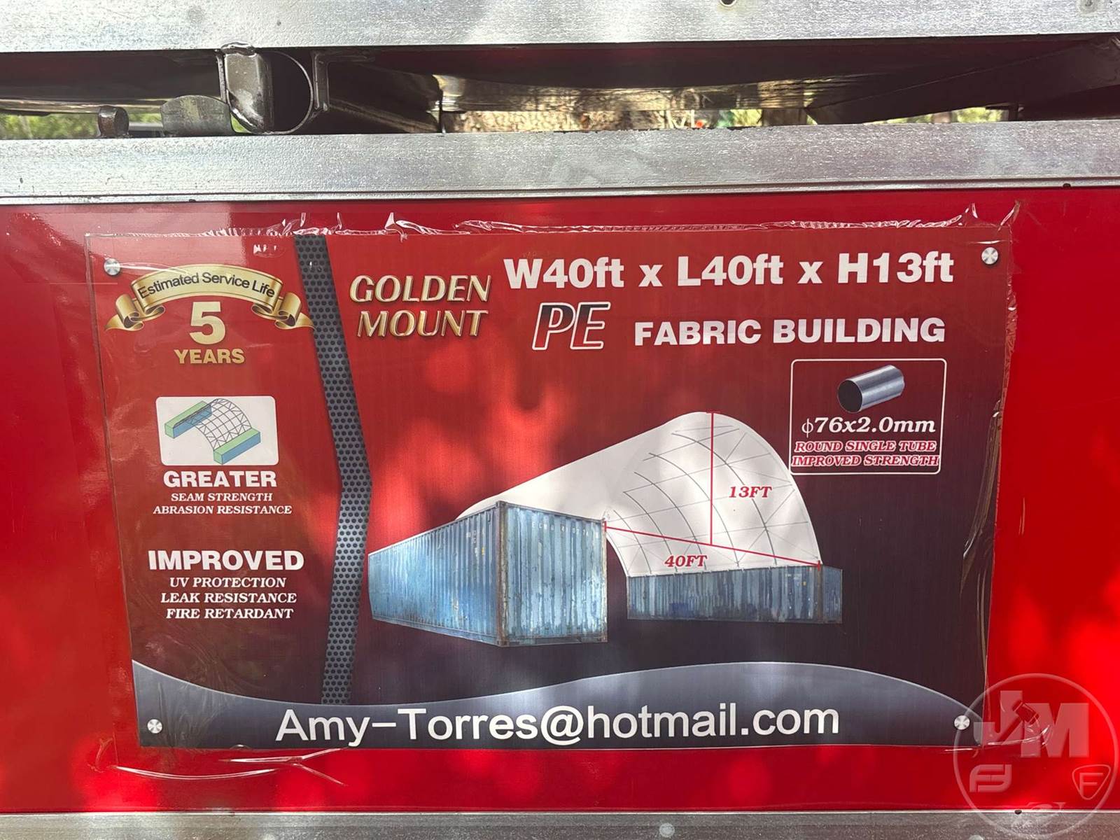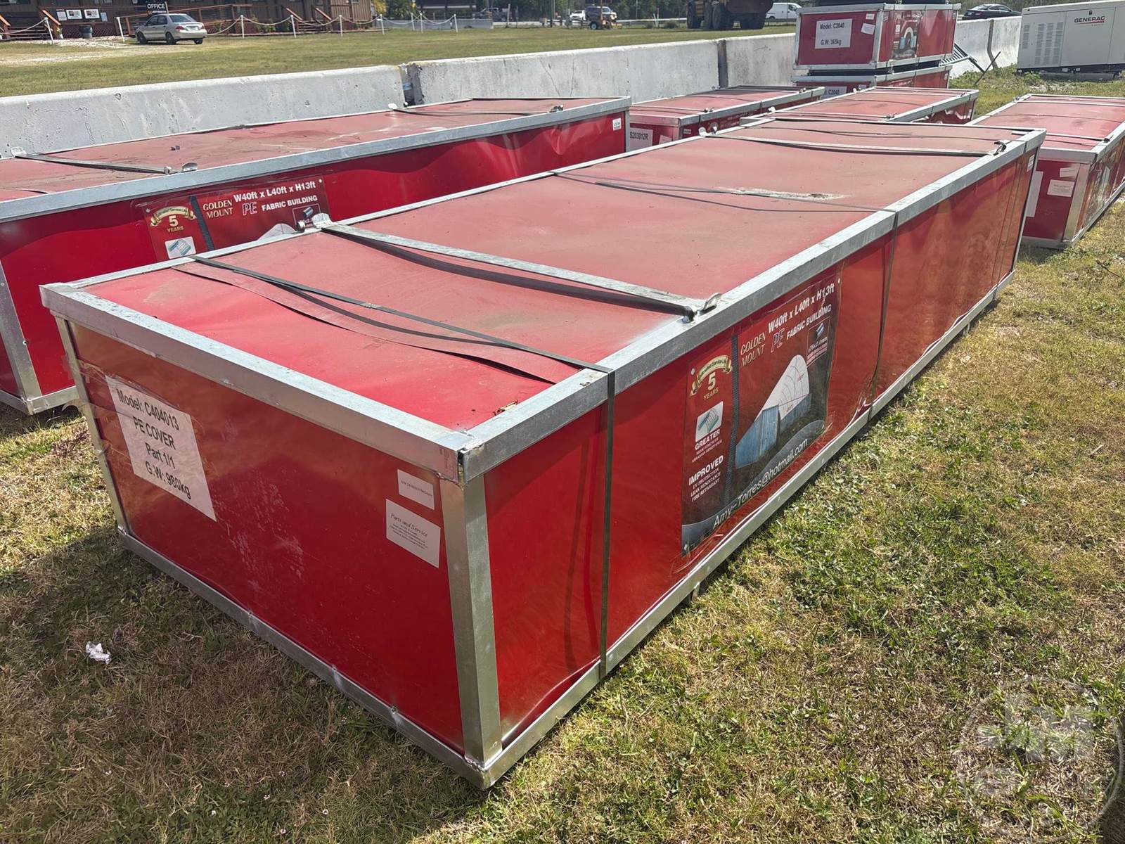 UNUSED, W40'XL40'X13', SNOW RATING REPORT, FABRIC CERTIFICATE, PE FABRIC GALVANIZED TUBE, UVRESISTANCE & FIRE RETARDANT
