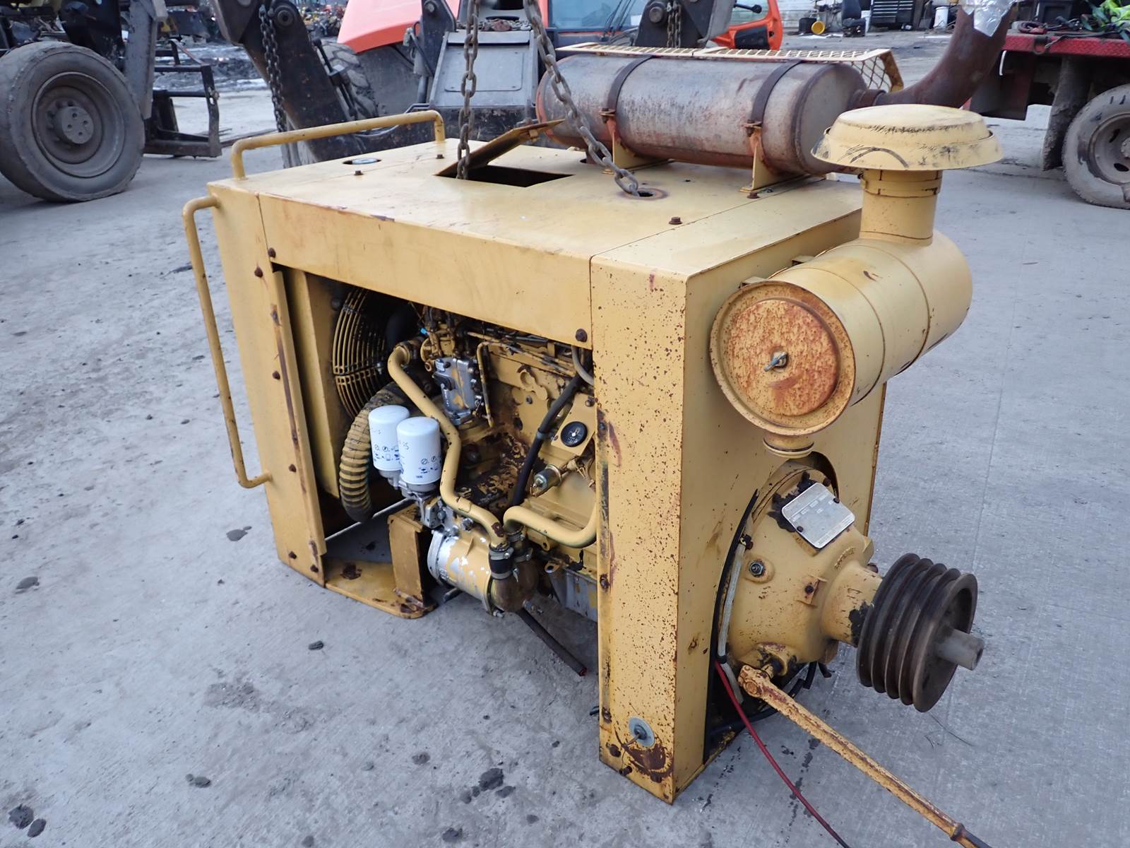Perkins T6.3544 diesel engine, turbocharged, mechanical fuel system, TU33422 build code, 145 HP at 2600 RPM rating, 354 series, PTO clutch, muffler, air cleaner, enclosure & accessories as pictured. EXCELLENT RUNNING ENGINE, SEE VIDEO -- REMOVED FROM AN ELEVATOR UNIT COMPLETE AS YOU SEE IT -- EXCELLENT, FULLY DRESSED POWER UNIT W/ POWER TAKE OFF AND ACCESSORIES -- SAVE THOUSANDS WITH THIS PRE-BUILT SETUP !!