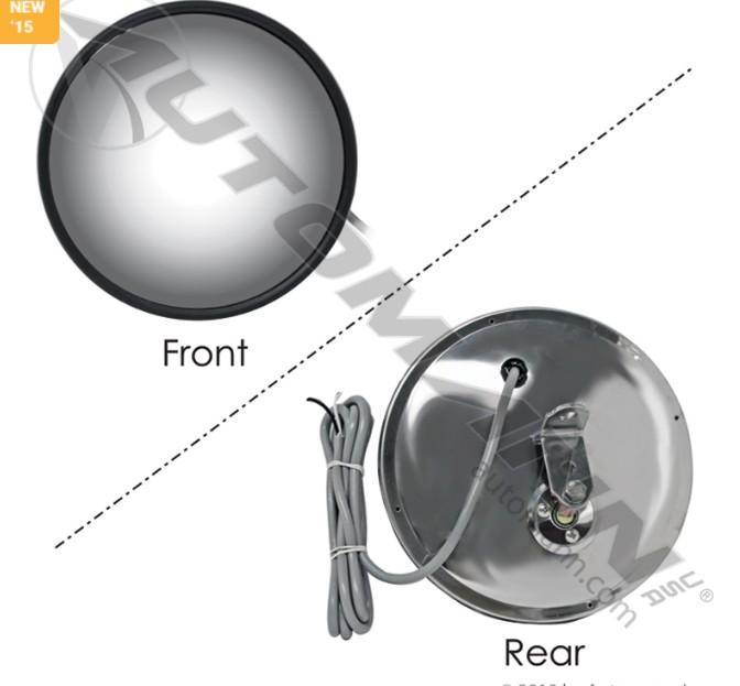 CONVEX MIRROR S.STEEL HTD OFFSET 8-1/2IN - PETERBILT 320, 330, 357, 359, 362, 365, 367, 377, 378, 379, 385