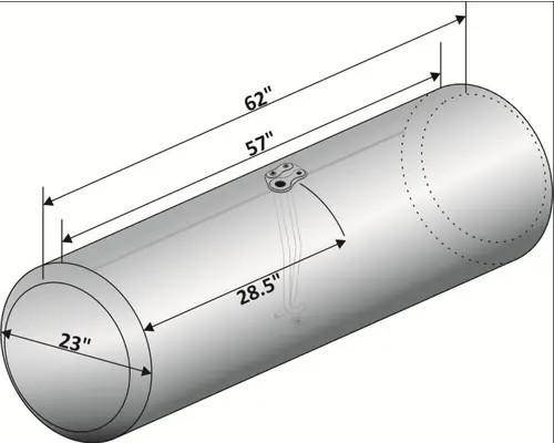 2007 AND UP PETERBILT 379 UNIVERSAL, ALUMINUM FUEL TANK, 23" X 62" 110 GAL. DRIVER SIDE REAR FILL