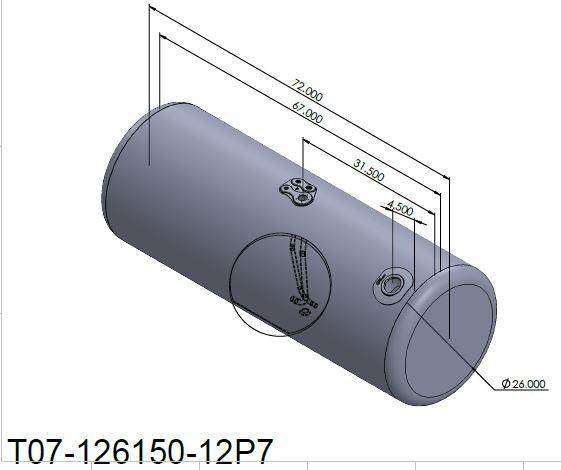 2007 AND UP PETERBILT 150 GAL. FUEL TANK 26" X 72" DRIVER SIDE REAR FILL