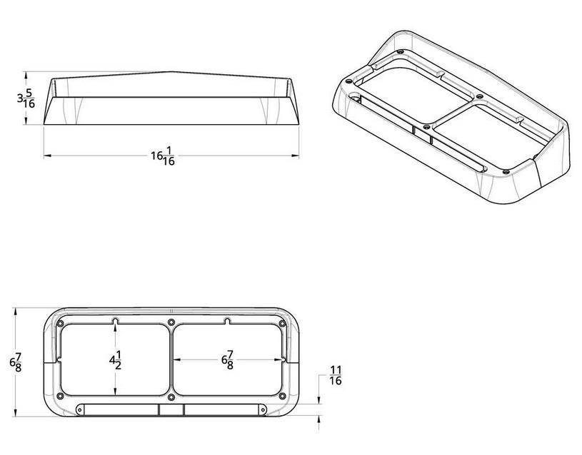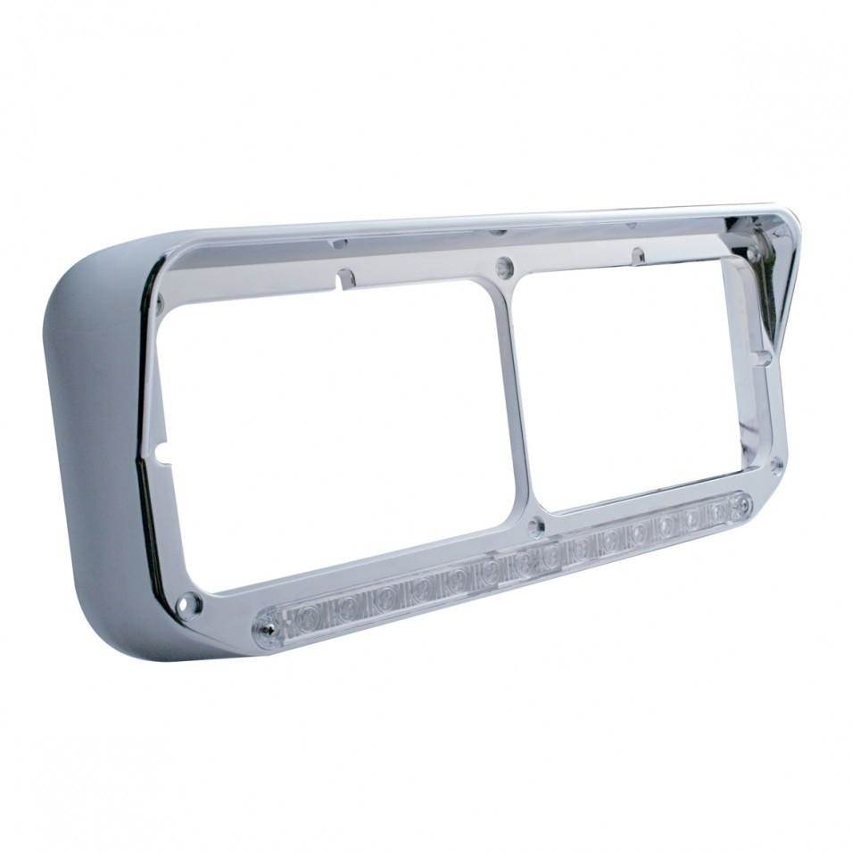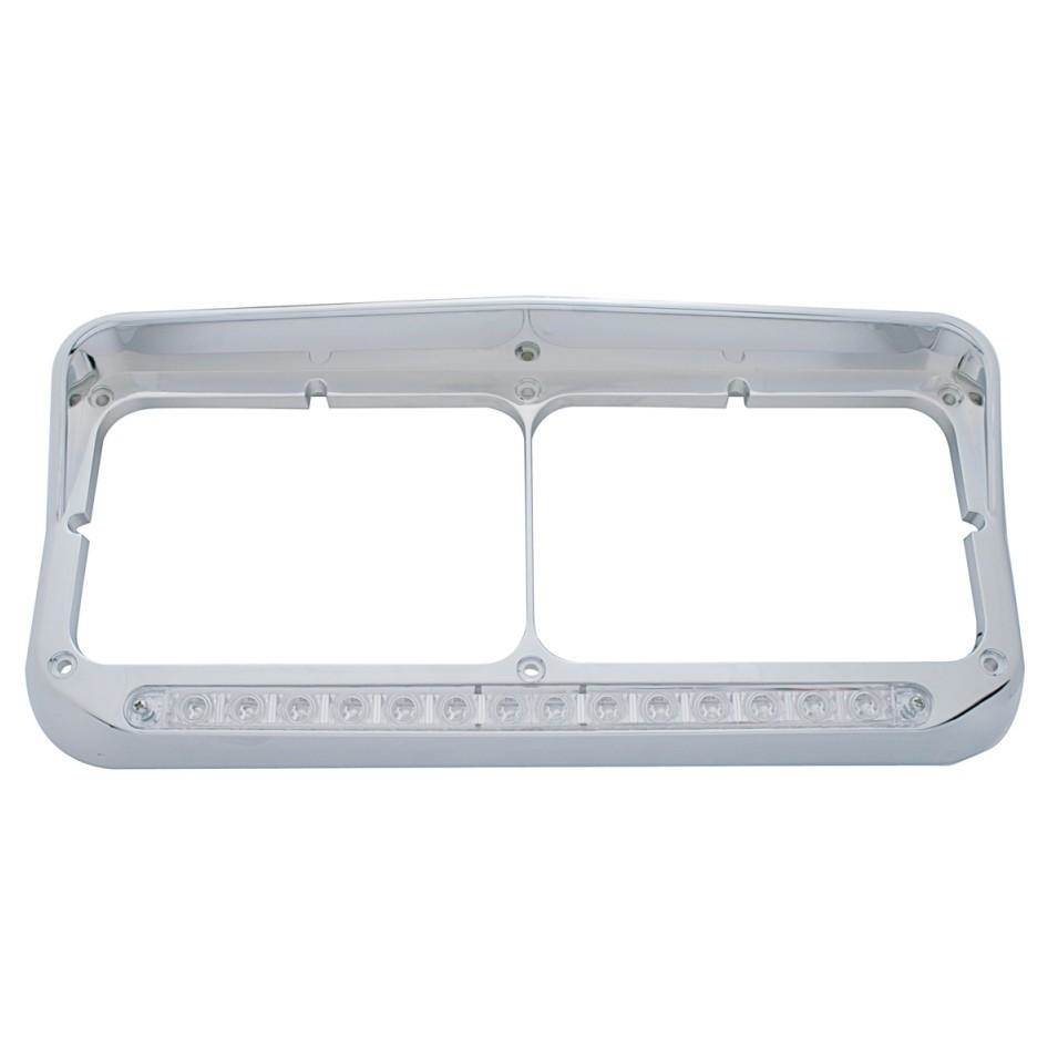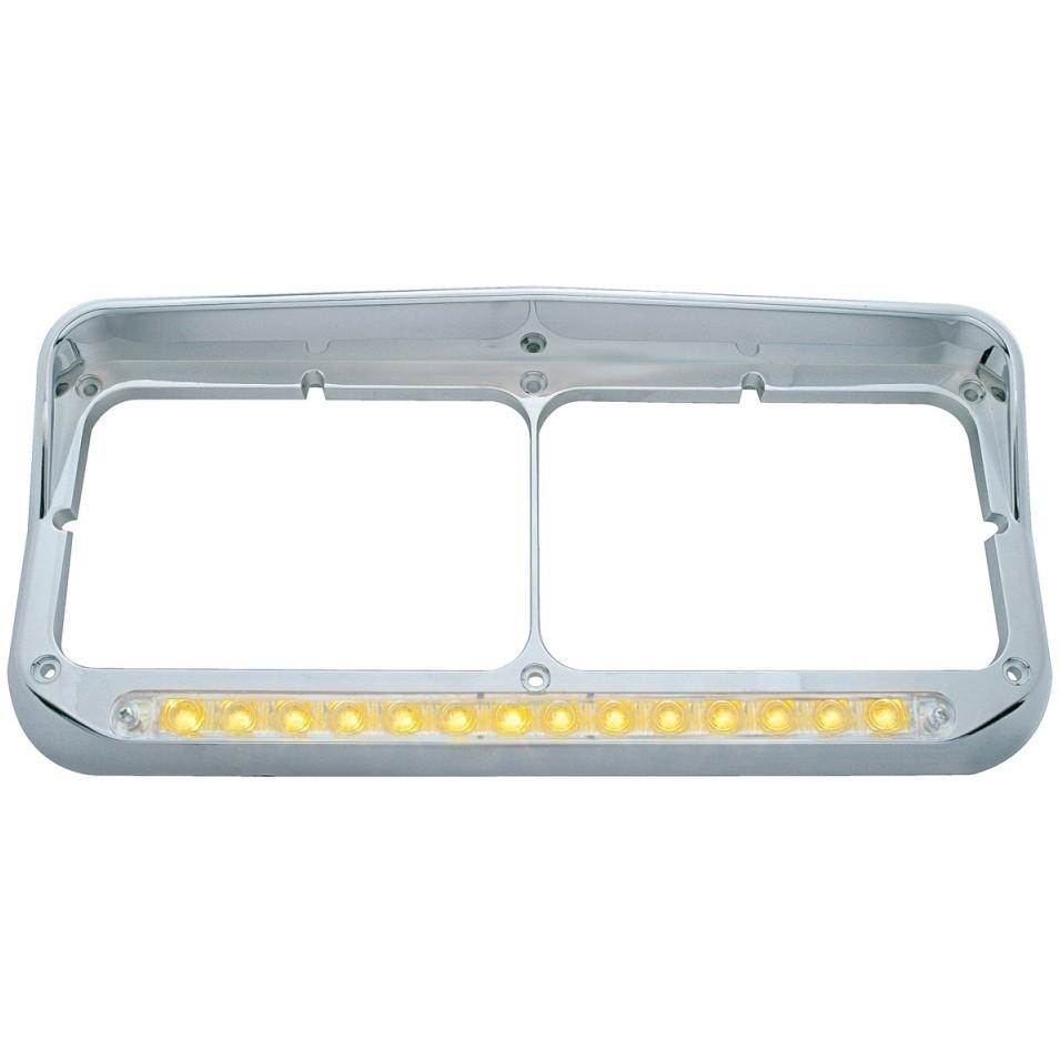 CHROME PLASTIC 14 AMBER LED RECTANGULAR DUAL HEADLIGHT BEZEL WITH VISOR - CLEAR LENS