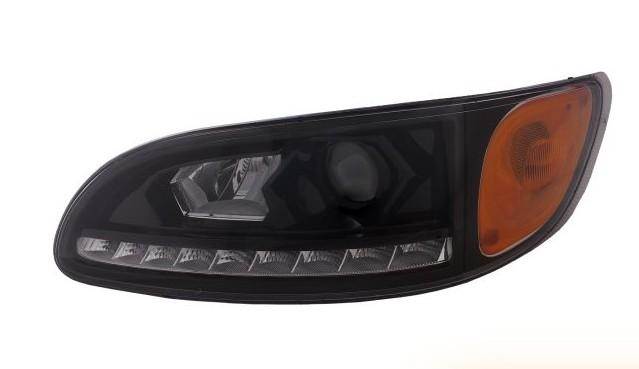 2000-2014 PETERBILT HEAVY DUTY HEADLIGHT ASSEMBLY WITH LED DAYLIGHT DRIVING LIGHTS, BLACK, PP PLASTIC, LEFT HAND