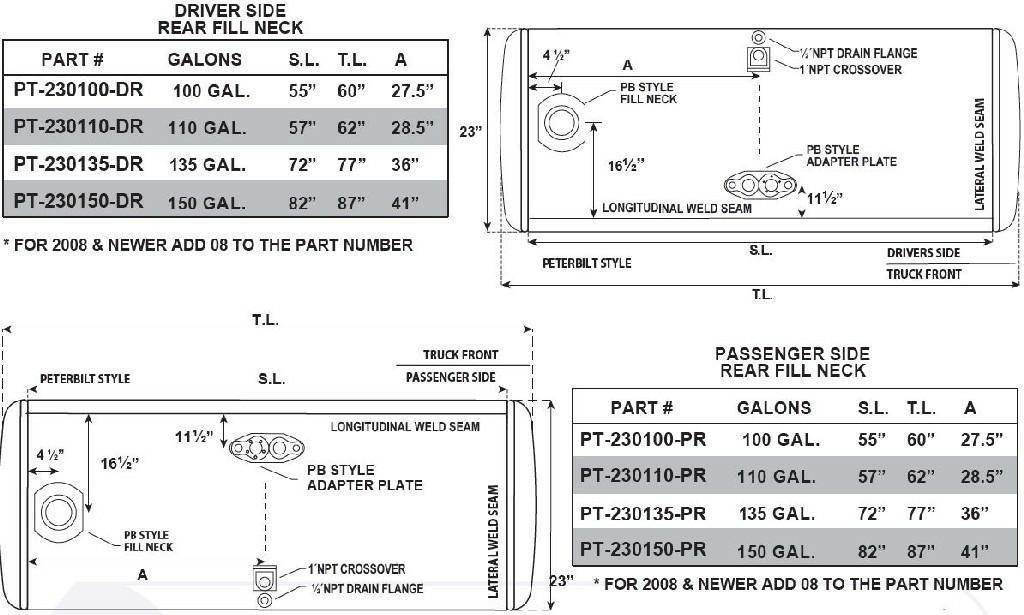 2007 AND UP PETERBILT FUEL TANK 23" X 60" 100 GAL WITH NO NECK.