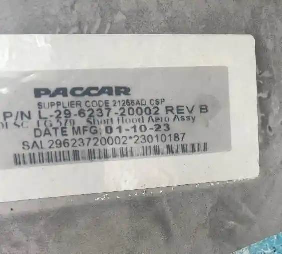 OEM Paccar Peterbilt 579 Short Aero no pivot hood p/n L29-6237-20002, Core Charge: 0.00