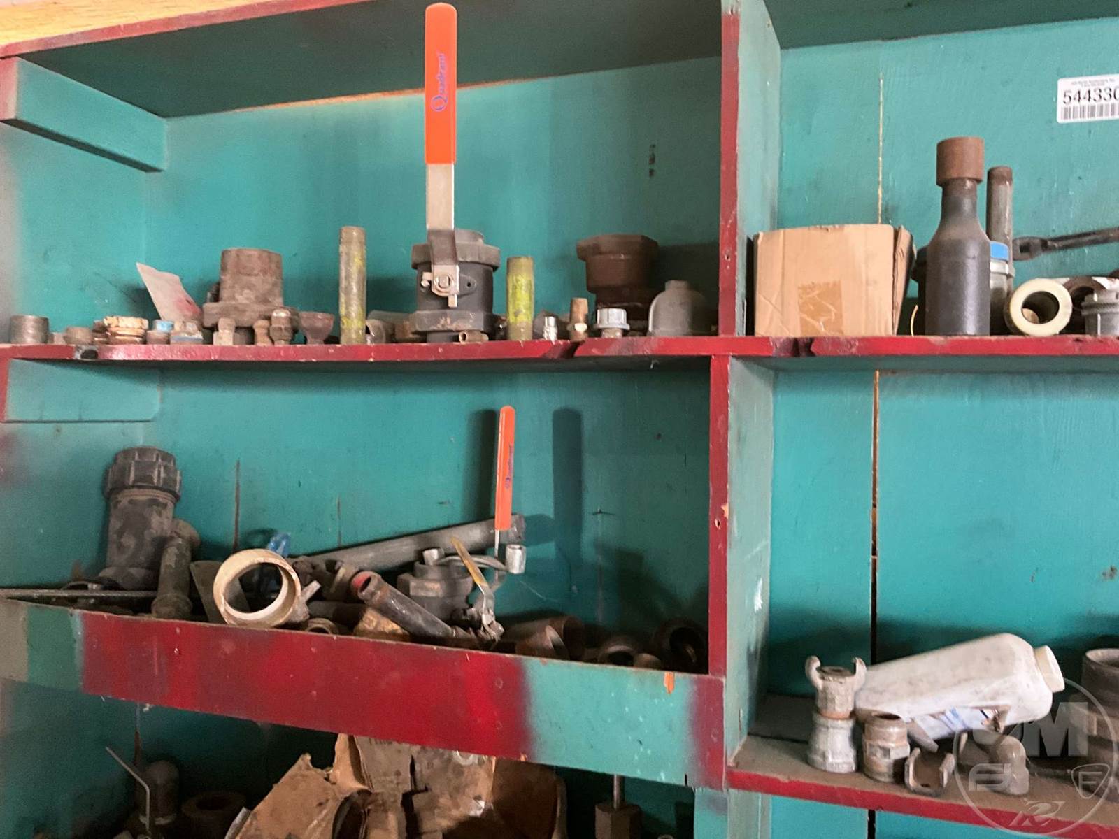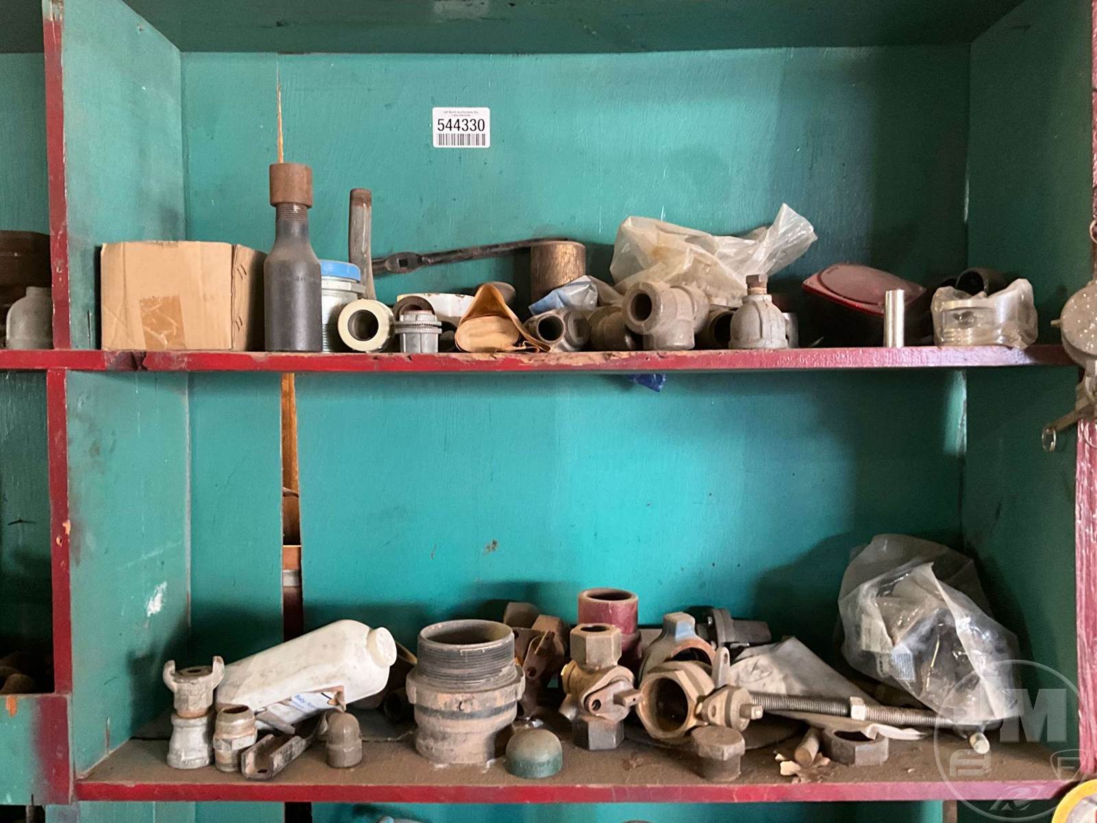PIPE FITTINGS, LOT OF 8 SHELVES WITH VARIOUS PIPE FITTINGS & VALVES