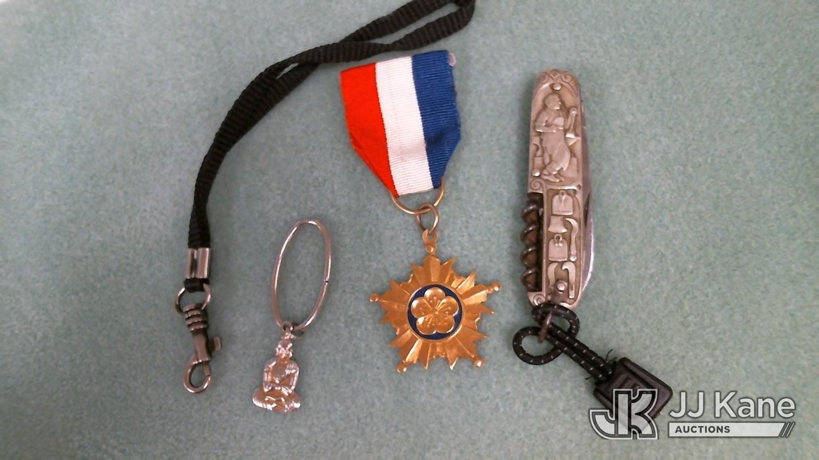 "POCKET KNIFE 2 KEY CHAINS FOREIGN MEDAL " NOTE: This unit is being sold AS IS/WHERE IS via Timed Auction and is located in Las Vegas, NV. item is located at 14655 Grand Valley Pkwy Las Vegas, NV 89165 and hours of operations are 8a-4p. Titles executed exactly as bidder registered. Ensure your name and/or business name and address in JJ Kane and/or ProxiBid is correct before bidding. For pre-sale questions, please contact Office Staff @ (801) 519-0123 and provide sale date and lot number. Las Vegas Dealer License Number DLR000053086 / OHV000053094. (Buyer is responsible for removal. Assistance by consignor or JJ Kane Auctioneers is not assured.)