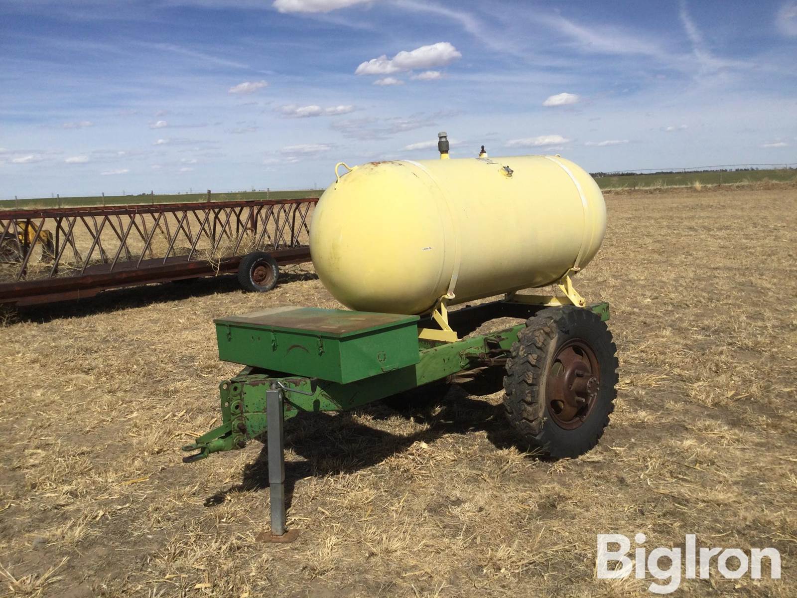 Portable Propane Tank Trailer, Pin hitch, 8.25-20 tires, 375 gallon tank, Gauge, Front toolbox, NO TITLE