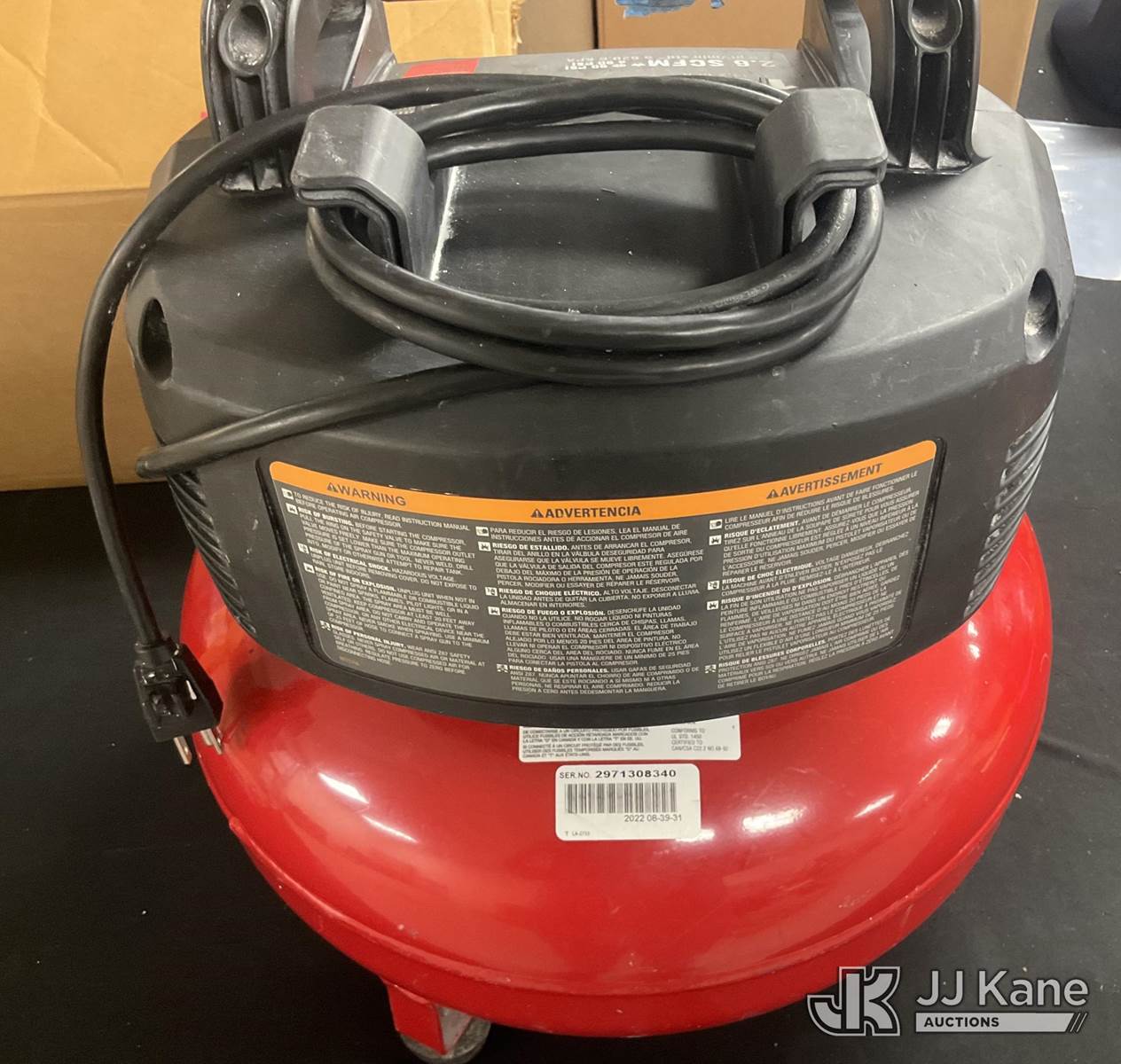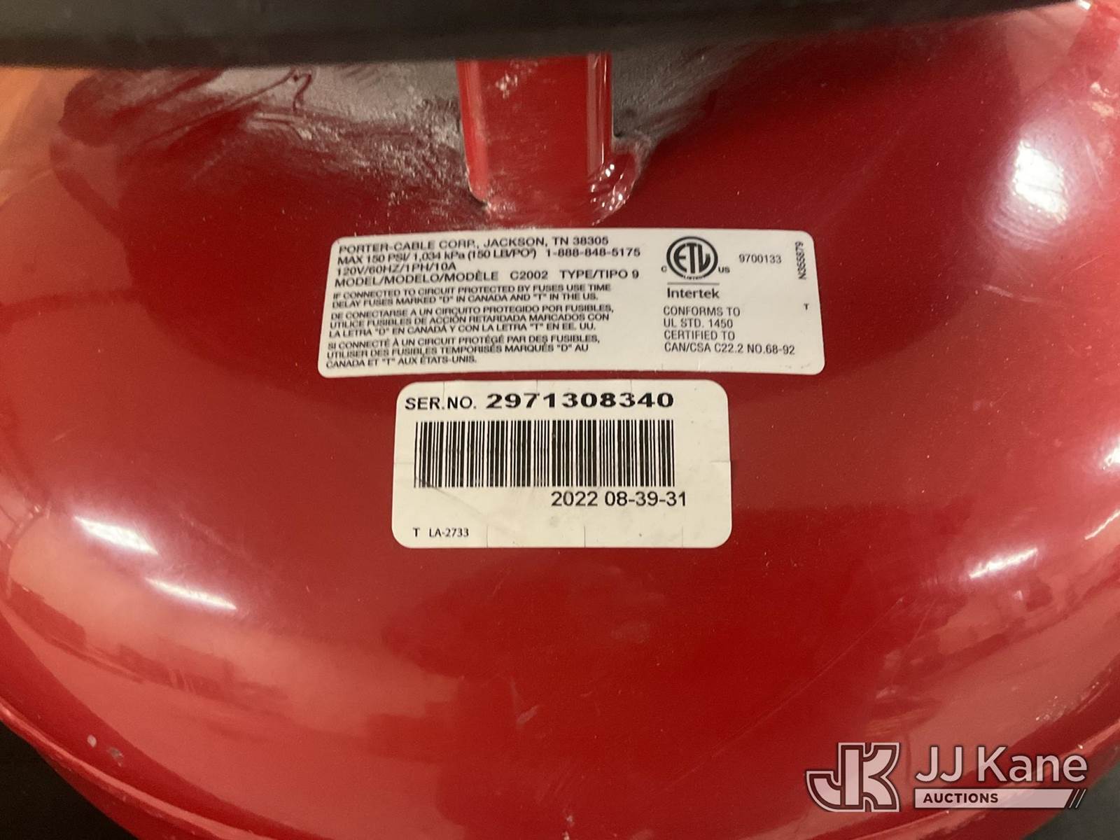 Porter Cable Air Compressor (Used) NOTE: This unit is being sold AS IS/WHERE IS via Timed Auction and is located in Jurupa Valley, CA. Inspection & preview days for this unit are the 2 business days prior to the first day of items closing for this auction, item is located at 4510 Muth Way Jurupa Valley, CA 92509 and hours of operations are 8a-4p. For pre-sale questions, please contact please contact Office Staff @ (310) 353-7140. Dealer License Number 45696. (Buyer is responsible for removal. Assistance by consignor or JJ Kane Auctions is not assured.)