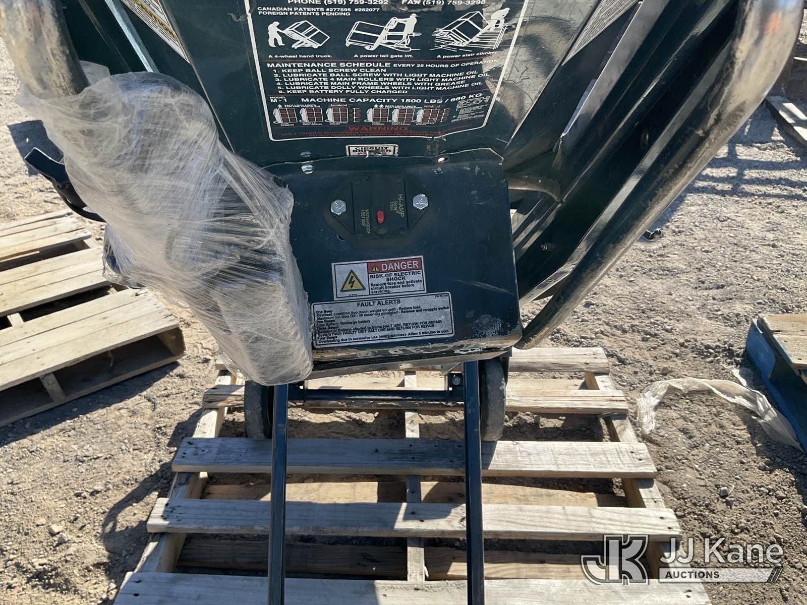 Power Stair Lift Dolly, 1,500lbs Capacity (Condition Unknown) (Seller States: Operates) NOTE: This unit is being sold AS IS/WHERE IS via Timed Auction and is located in Sparks, NV. Inspection & preview days for this unit are the 2 business days prior to the first day of items closing for this auction, item is located at 601 Britain Dr Sparks, NV 89437 and hours of operations are 8a-4p. Titles executed exactly as bidder registered. Ensure your name and/or business name and address in JJ Kane and/or ProxiBid is correct before bidding. For pre-sale questions, please contact Office Staff @ (801) 519-0123 and provide sale date and lot number. Sparks Dealer License Number DLR000052908 / OHV000052909. (Buyer is responsible for removal. Assistance by consignor or JJ Kane Auctions is not assured.)