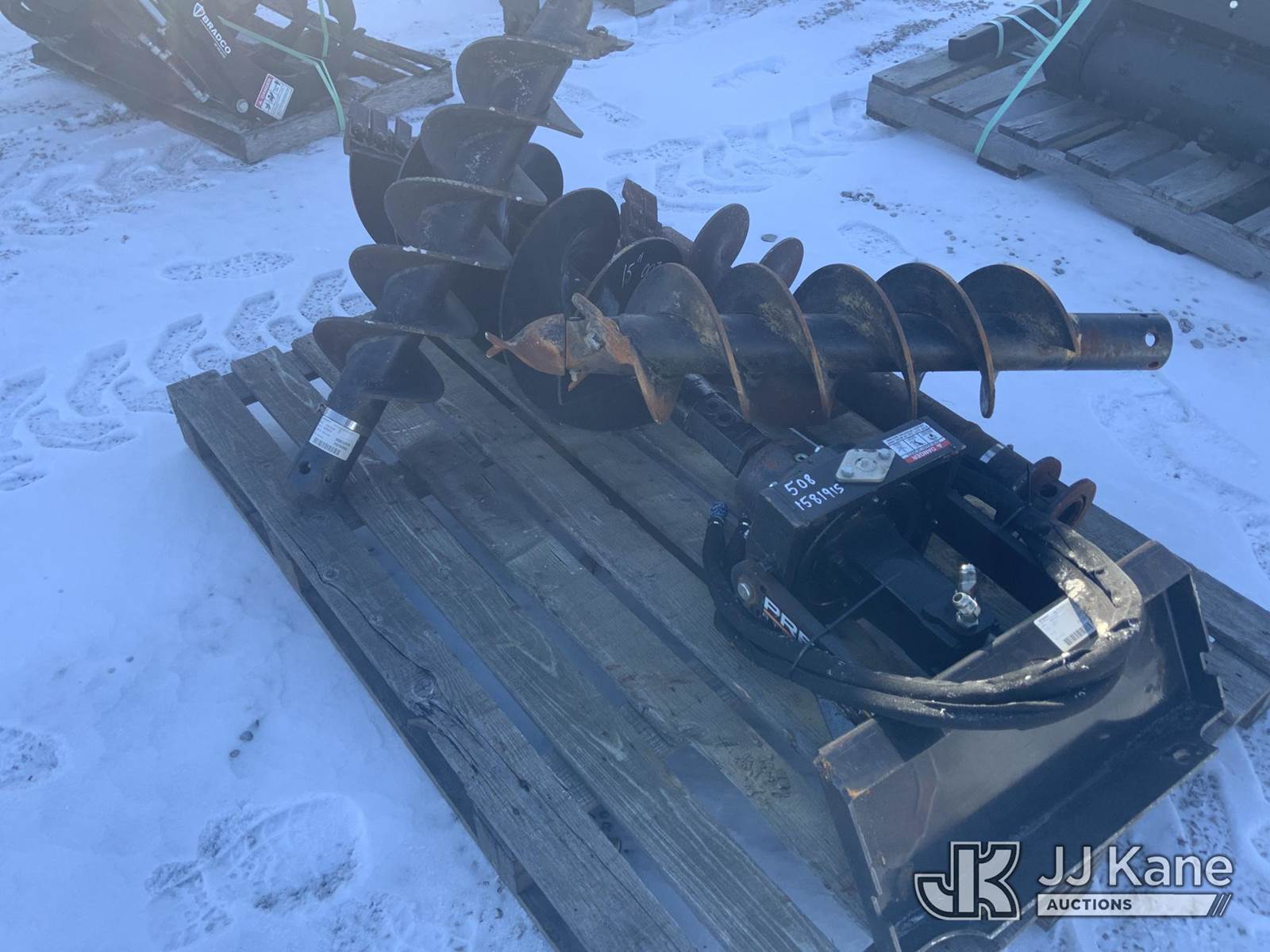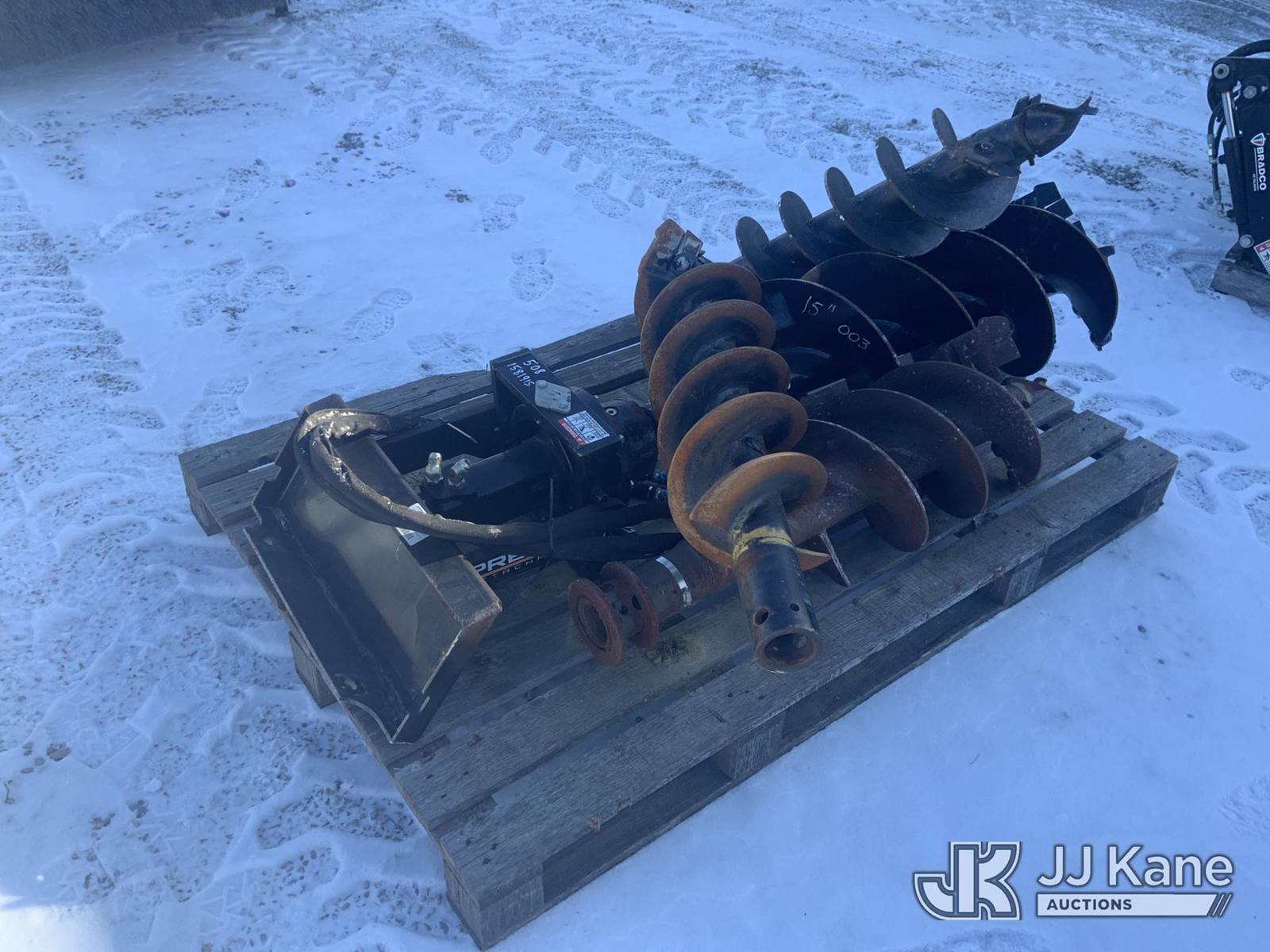 Premier 2" Auger Drive Attachment, Ser. # 25556, with 15", 12" & two 9" Auger Bits (Condition Unknown) NOTE: This unit is being sold AS IS/WHERE IS via Timed Auction and is located in Fort Wayne, IN. For more information & removal arrangements please contact Office Staff @ (260) 450-9822. Load out by appointment only, Buyer/Hauler must present copy of paid invoice upon arrival. Purchaser acknowledges ALL lots must be removed within (10) business days of Auction, or a storage fee may be incurred. For load out and pick up information, please reference the hauler sheet sent out after purchase. (Buyer is responsible for removal. Assistance by consignor or JJ Kane Auctions is not assured.)