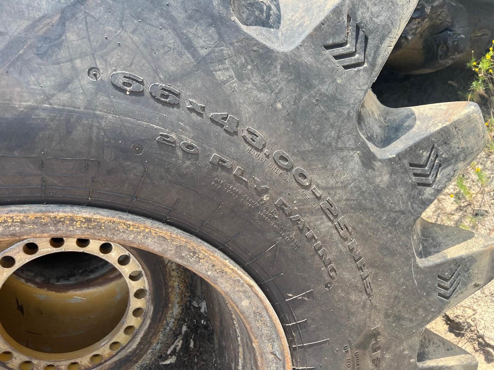 Set of 4 used 67x43-25 floatation tires mounted on Cat wheels. $8,500